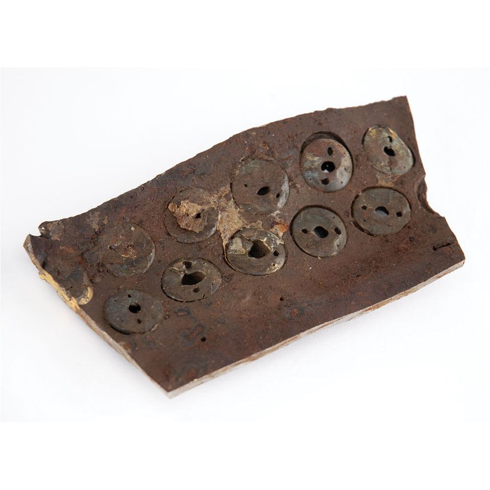 Fragment of a V-2 rocket injection chamber with ten valve holes, measuring approximately 6è x 3.25è x .75è. The V-2, famously developed by Wernher von Braun and his team at Peenemunde, was the world's first functional large-scale liquid-propellant rocket. In very good to fine condition.