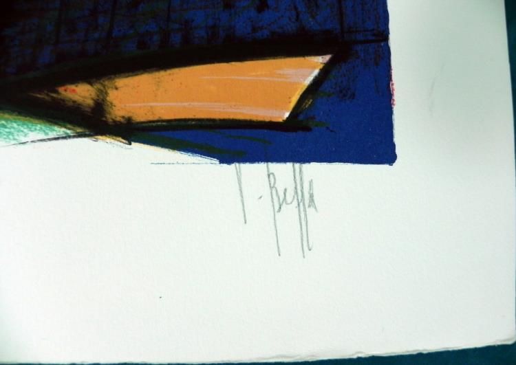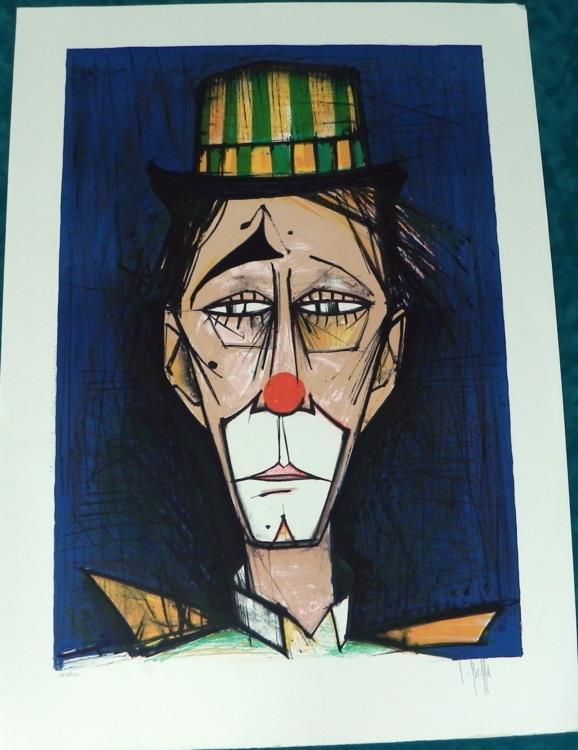 Reminiscent of the style of Bernard Buffet. It is also said that V. Beffa was Bernard Buffet and he used this name of V. Beffa because of contract under his name Bernard Buffet.Artist: V. BeffaTitle: ClownMedium: LithographEdition: 250 numbered in pencilSignature: In pencil lower right, Arches watermarkedImage size: 22" x 17 1/2"Paper size: 22" x 30"Condition: Very Good; Ready to be framedBiography The French painter and graphic artist Bernard Buffet was born in Paris on July 10, 1929. His paintings often deal with one subject, such as views of certain cities, flowers, ships, insects etc. Bernard Buffet joins the Paris artists group "L' homme témoin" and develops his own unmistakable Neo-Realist style that has a socio-critical approach. Bernard Buffet's structured works are dominated by dark lines, which gives them a dramatic effect. In 1955 he is elected the most important post-war artist by the art magazine "Connaissance des Arts". The numerous self-portraits play an important role in his oeuvre. Besides paintings, Bernard Buffet also makes an extensive oeuvre of graphic art and also large sculptures. Bernard Buffet dies in Tourtour 1999, committing suicide as the Parkinson disease had limited his abilities so much that he was not able to paint any longer.*retrieved from: http://www.bernhard-buffet.com/