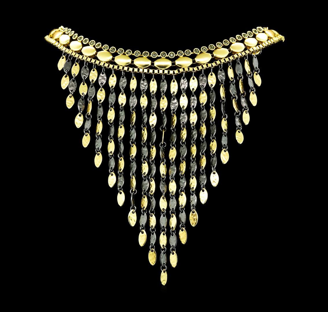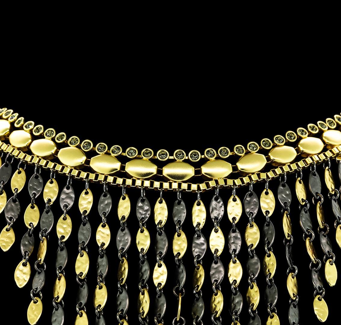 High end designer jewelry. V Cascade Charm Necklace - Gold Plated. Gold Plated Chain. Gold/ Black. Short. Total Weight: 84.8 grams.