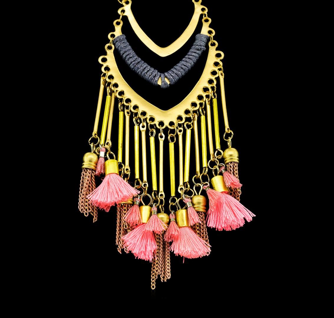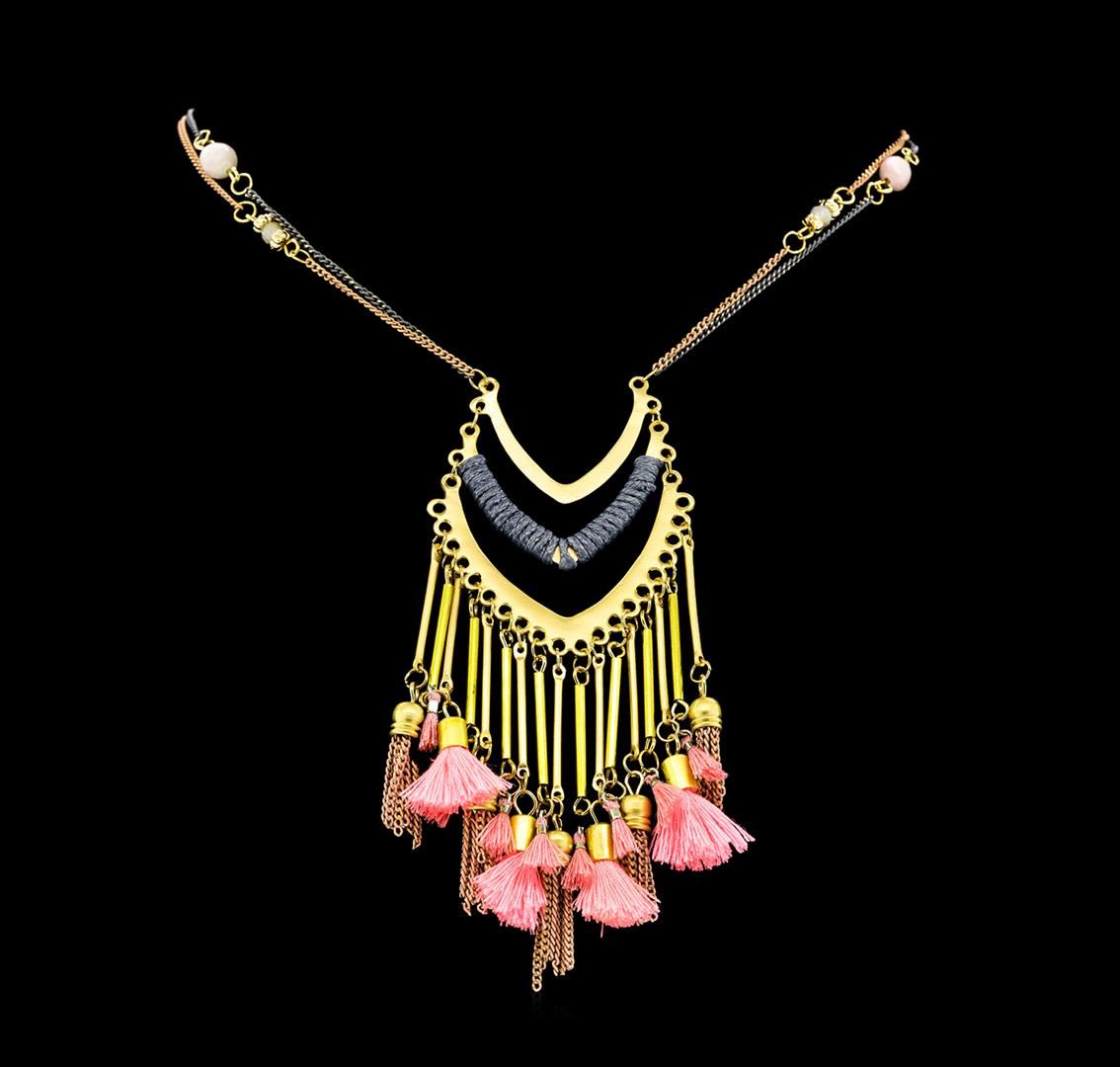 High end designer jewelry. V Chandelier Chain Necklace - Gold Plated. Gold Plated Chain. Gold/ Multi. Long. Total Weight: 31.6 grams.