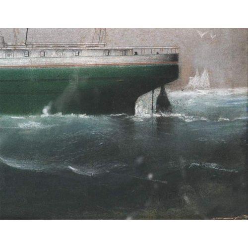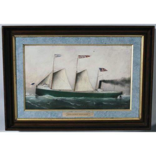V.D. NICKERSON, The Republic, a ship portrait, 17"x28" pastel, circa 1890, CONDITION REPORT: some foxing and toning.