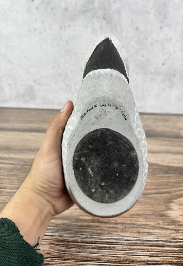 10 1/2" by 4 1/4" by 4 1/8". Neck is cracked.