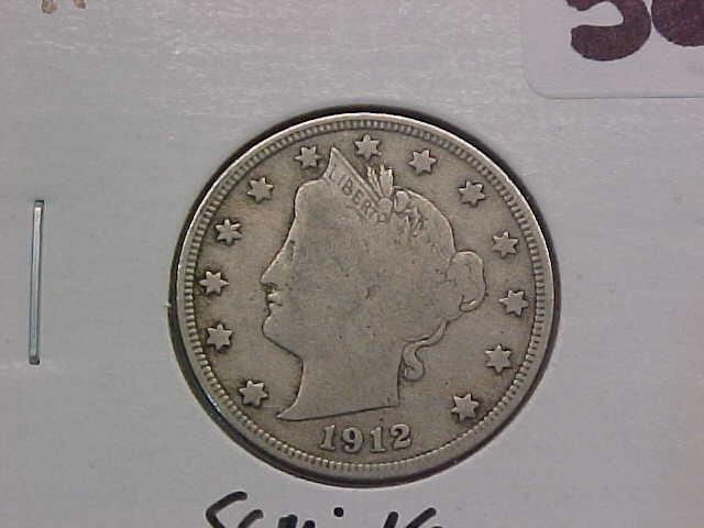 V Nickel 1912S Fine, semi key, only 238 K minted