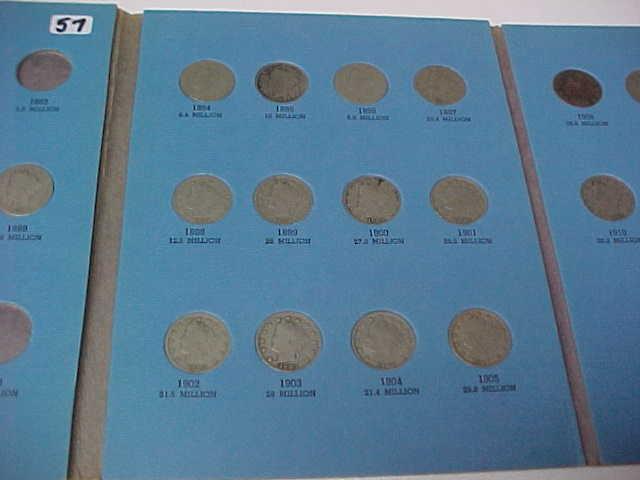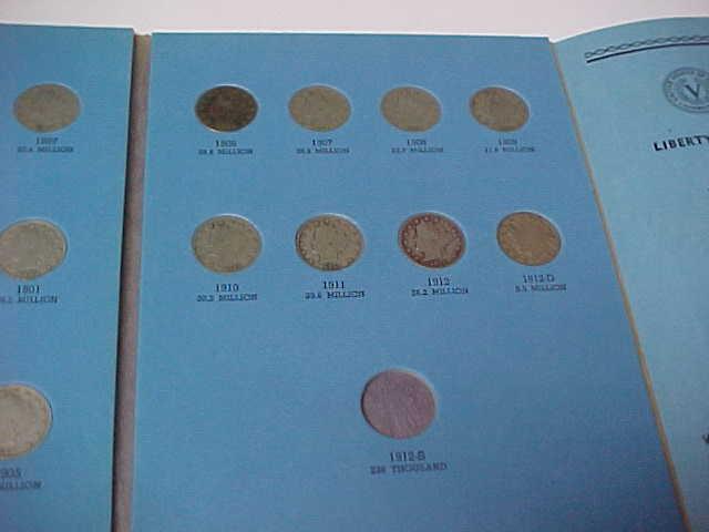 V Nickel Whitman Album, 1883 w/cent-1912D, no 83 no cent, 85, 86, 93, 12S, avg circ