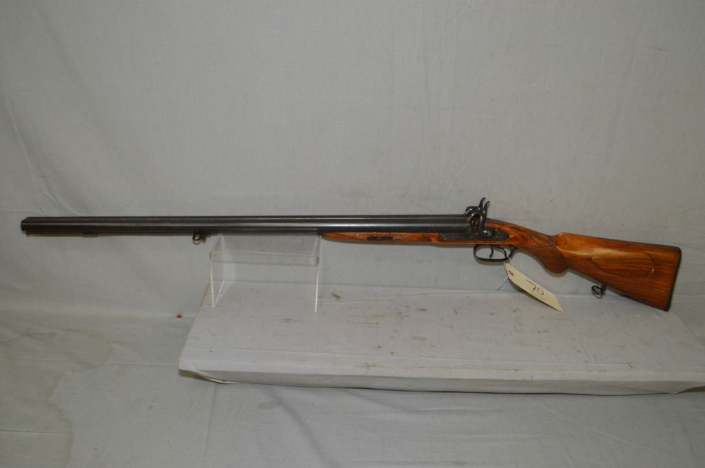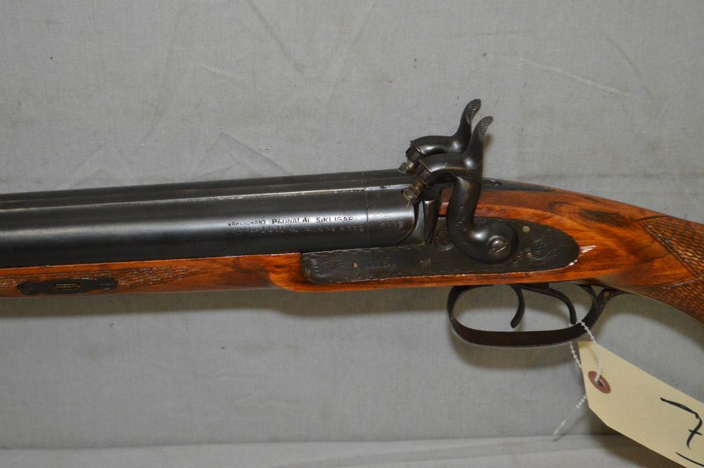V.P. Sikligar Model 1971 .12 Ga Perc Cal Side By Side Black Powder Shotgun w/ 32" bbls [ blued finish, metal furniture, rounded checkered pistol grip stock w/ inlaid patch box, sling swivels & ram rod ] Ser # 6772