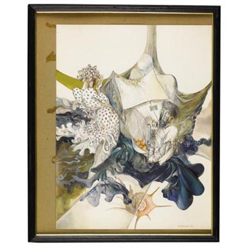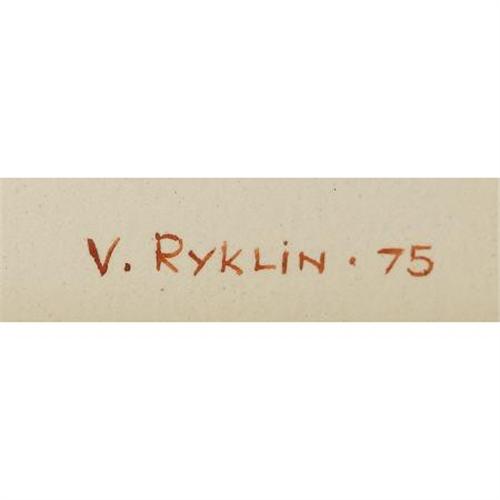 <B>V. RYKLIN (Russian, 20th Century)</B></I><BR><I>Still Life Abstraction</B></I>, 1975<BR>Watercolor and gouache on paper<BR>18 x 14 inches (45.7 x 35.6 cm)<BR>Signed lower right:<I> V. Ryklin '75</B></I><BR> <B>Condition Report:</B> Normal signs of wear as appropriate with age. Not examined out of frame.<BR><BR><b>Shipping:</b> Framed - with Glass, Small (<a target="_blank" href="http://www.heritageauctions.com/common/shipping.php">view shipping information</a>)