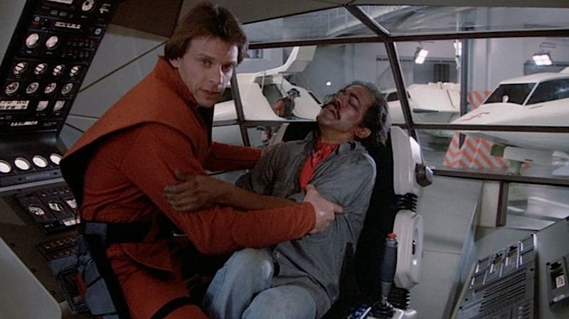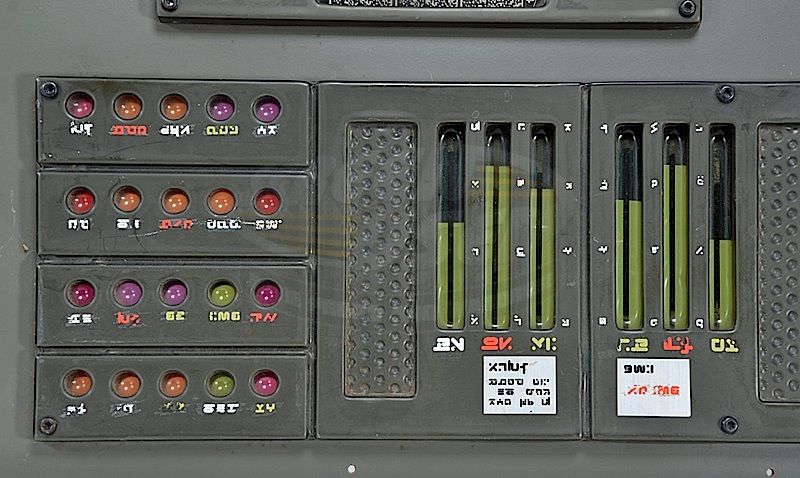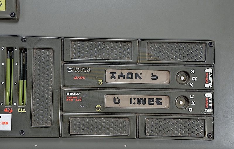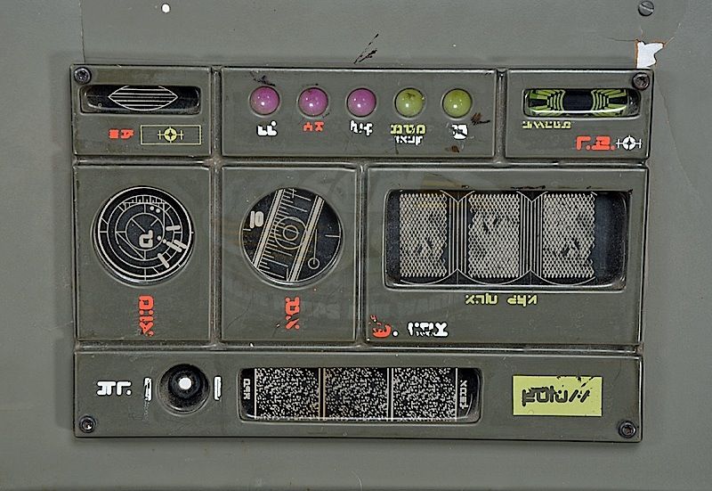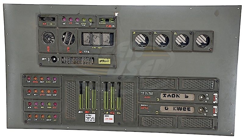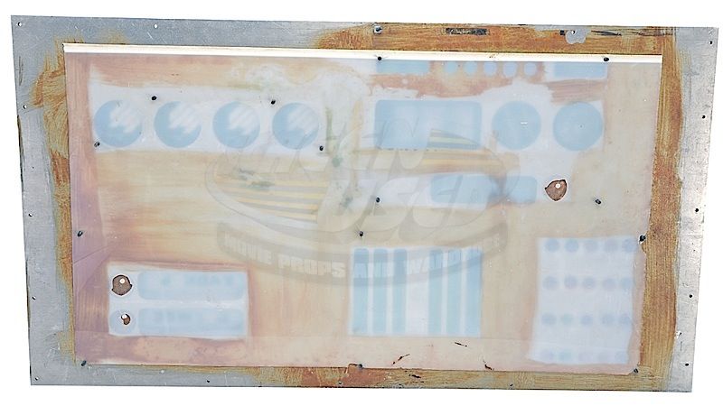 (Warner Bros. Television, 1983) This prop panel was custom made by the production for use as set dressing on the Visitors ship interior. The panel is made of aluminum with plastic and vacu-formed sections added with alien graphics. Minor wear from use is present, measures 35.5" wide x 19.75" tall.