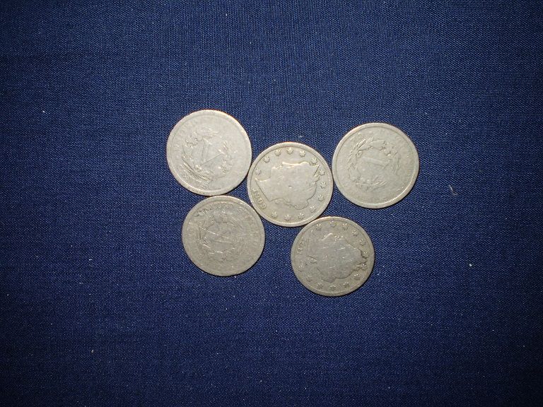 5 v nickles dated 1903,1907,1909,1919 and 1911 vg+