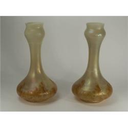 Formába fúvott irizáló üveg. Lapított gömbforma, keskenyedo nyakkal. Pallme König & Habel, 1900 körül, M.: 25 cm