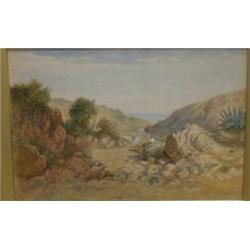 VACHER, Charles, 1818-1883. "Old Road near Algiers". Aquarelle, signée, titrée et datée "1856". École anglaise. Watercolour, signed, titled and dated "1856". English School. 12 1/2" x 18 1/2" - 31.8cm x 47cm. $1800/2400