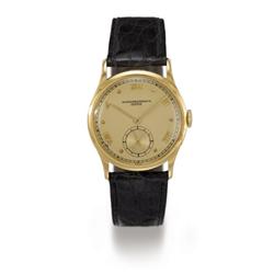 18K, NICKEL LEVER MOVEMENT, BIMETALLIC COMPENSATION BALANCE, PINK DIAL, APPLIED DOT AND ROMAN NUMERALS, CIRCULAR CASE
