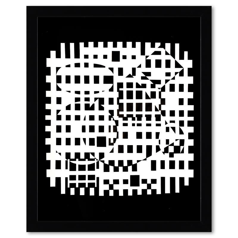 VAH-NEG et Nethe de la serie Croises (Diptych) by Vasarely (1908-1997). "VAH-NEG et Nethe de la serie Croises (Diptych)" is a set of heliogravure prints on paper, published in 1973, by Victor Vasarely (1908-1997). These pieces come custom framed, with a letter of authenticity and with a 1976 Vasarely paperback. Measures approx. 12.5" x 15" (frame), 10" x 13" (image).