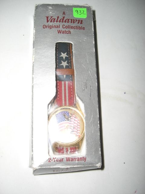 VALDAWN *AMERICA* WATCH WITH 3D EAGLE FLYING/USA FLAG FACE & BAND IN ORIGINAL BOX-BOOK VALUE $70.00+!! WATCH CAME OUT OF SAFE BOX!! ***Coin, Currency & All Items Listed in this auction - Grades, Conditions and Values are not Safe Deposit Coins LLC Responsibilty. Grades, Condition and Values are determined by Consigner(s) & Buyers ONLY