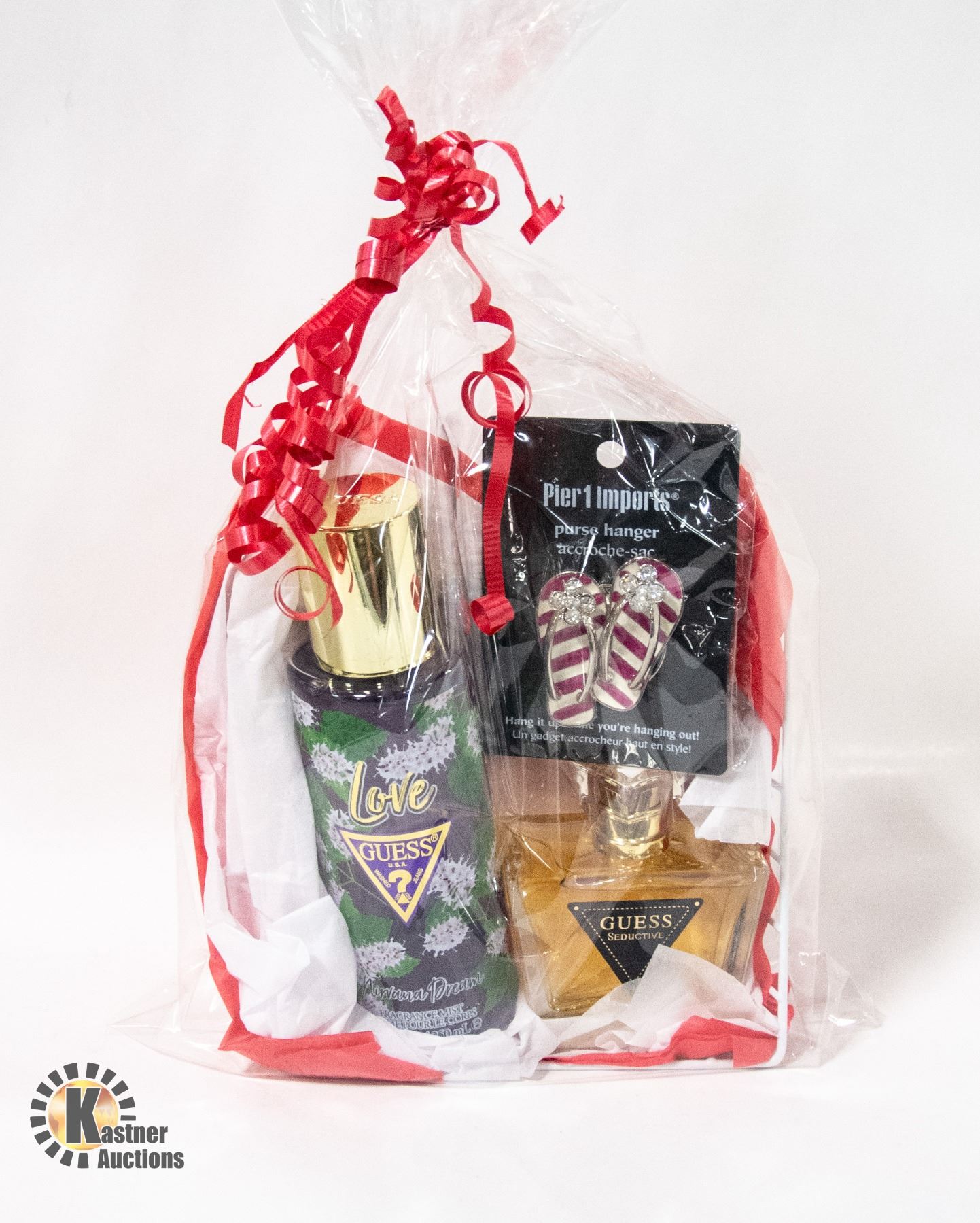 GUESS SEDUCTIVE EAU DE PARFUM SPRAY 75 ML, GUESS LOVE NIRVANA DREAM MIST 250 ML & PIER IMPORTS PURSE HANGER SANDALS **ALL ITEMS MUST BE REMOVED BY 5PM SATURDAY, FEBRUARY 8TH 2025. ALL REMAINING ITEMS WILL BE SUBJECT TO A $6.00 PER DAY STORAGE CHARGE. ANY ITEMS REMAINING AFTER MONDAY, MARCH 3RD 2025 WILL BE CONSIDERED FORFEITED. NO REFUNDS WILL BE ISSUED FOR FORFEITED ITEMS. TO SCHEDULE A PICK UP APPOINTMENT CLICK HERE