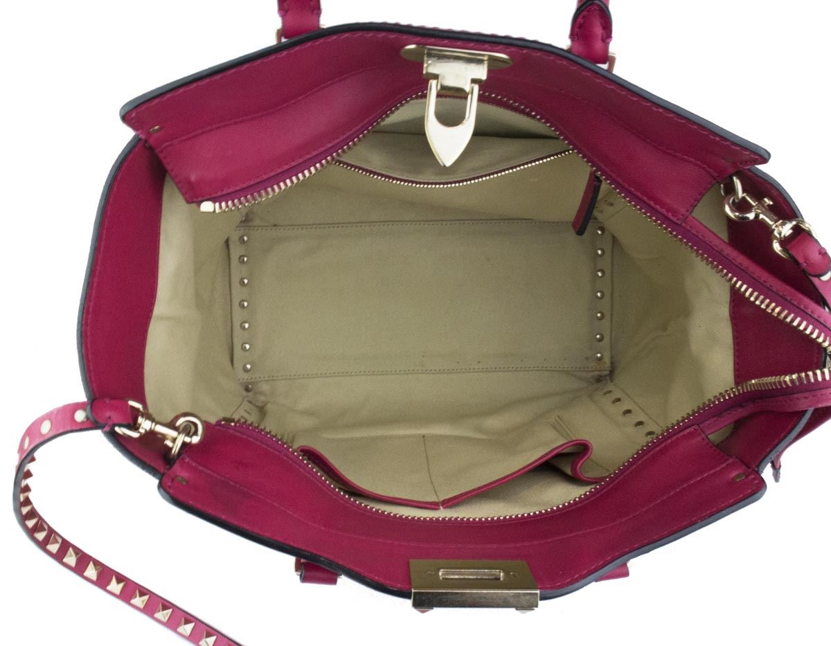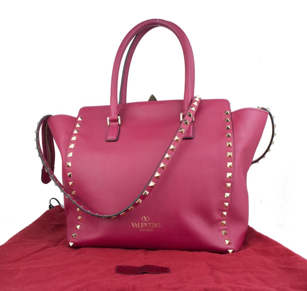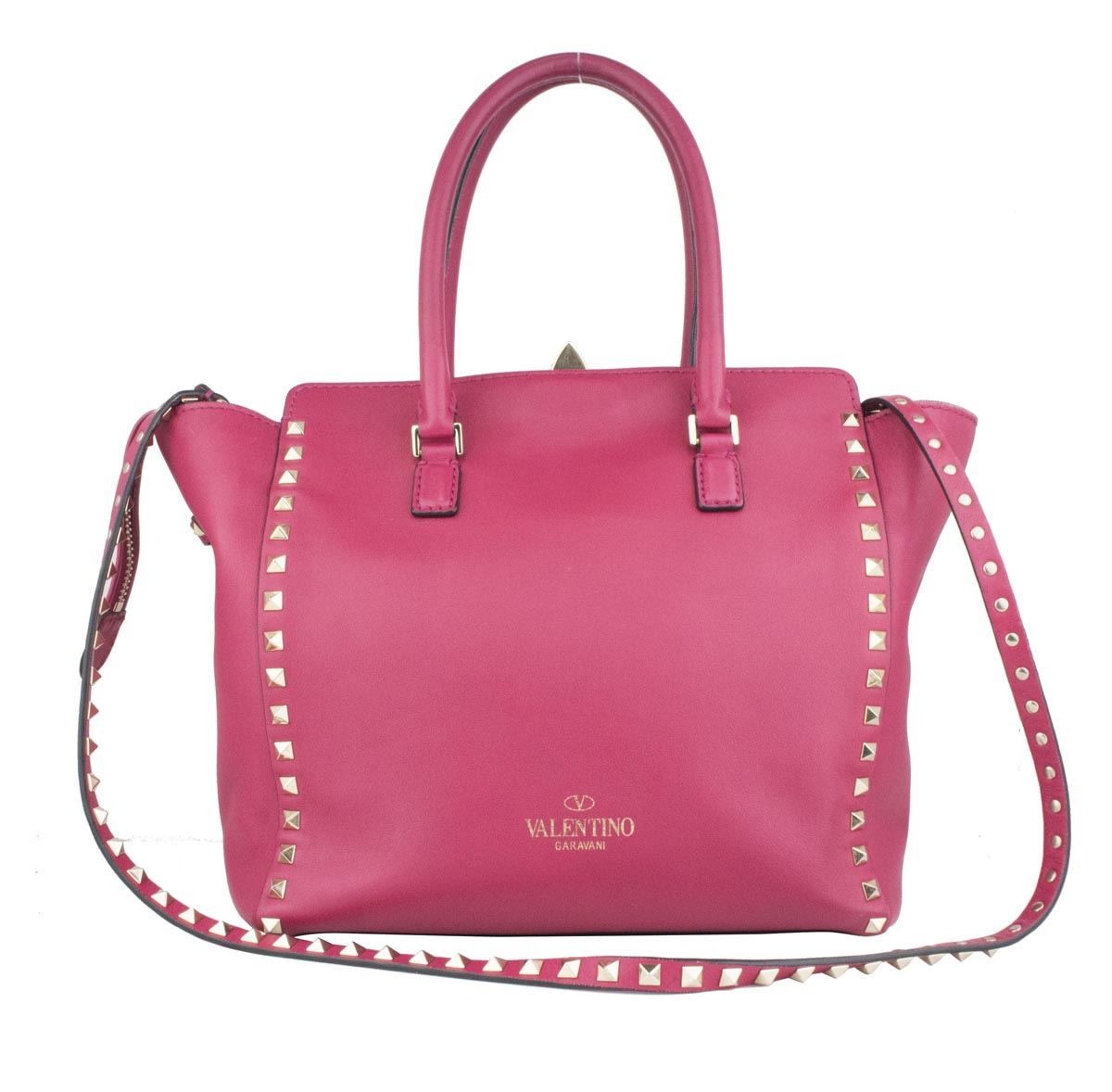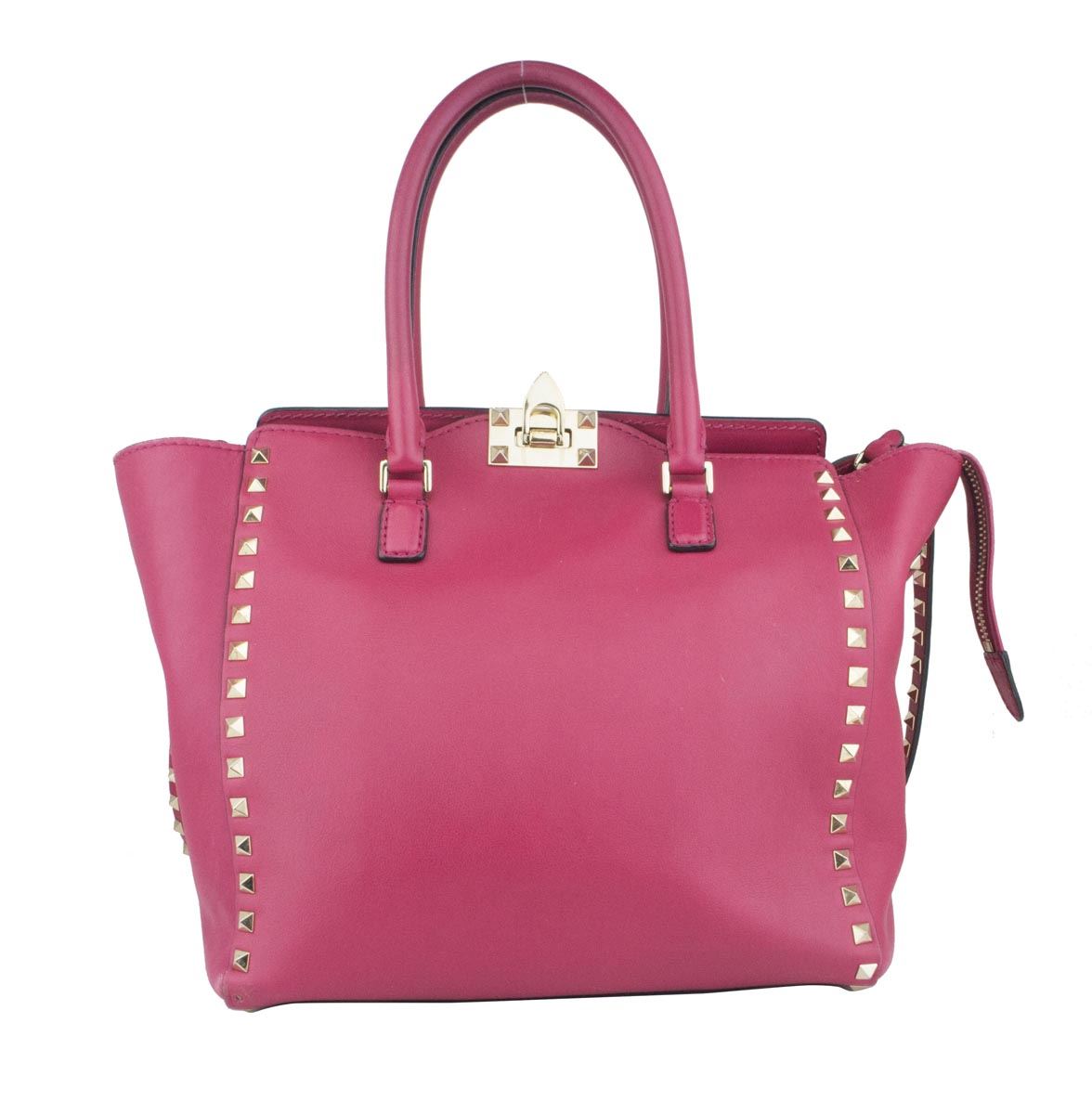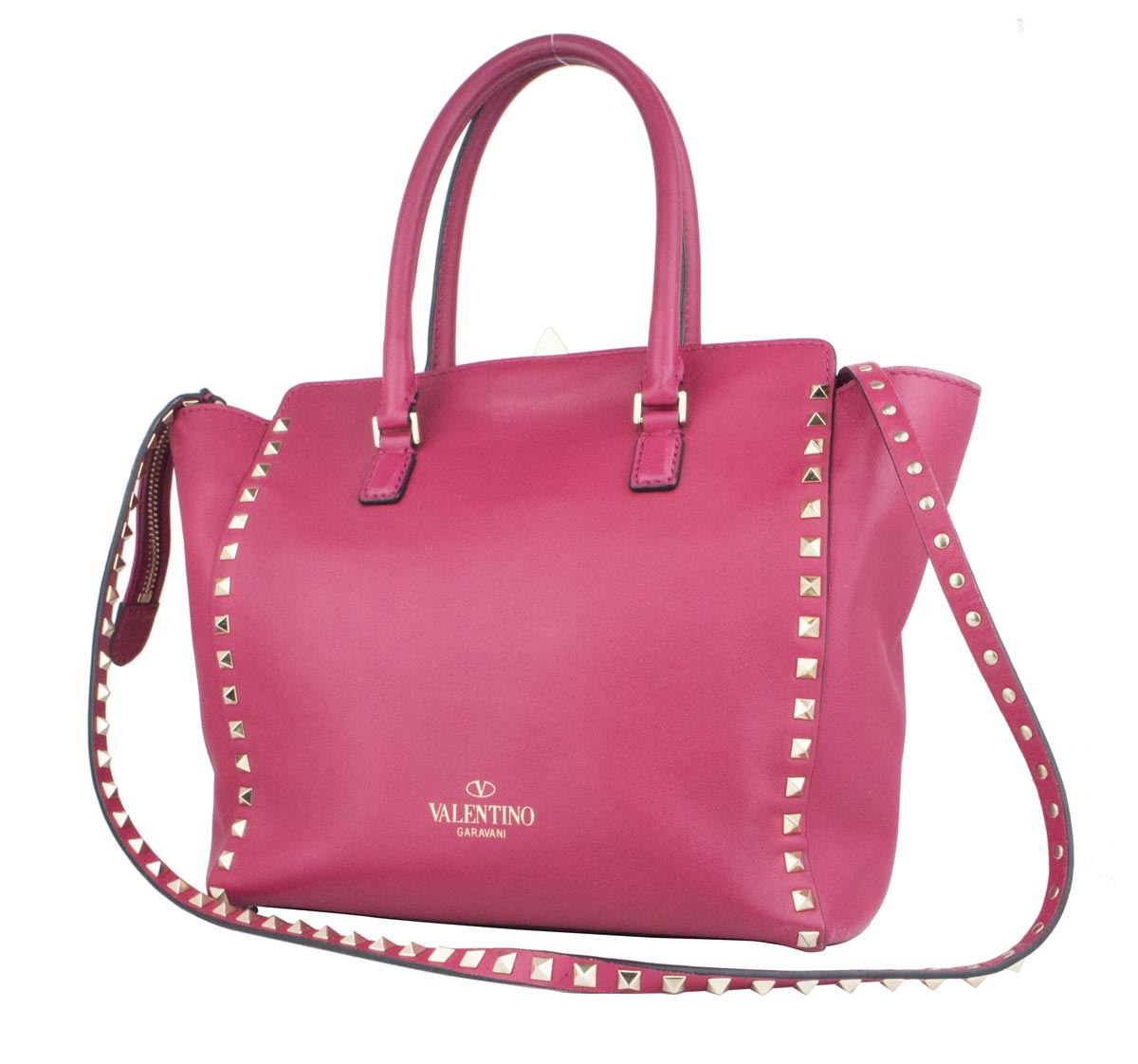 VALENTINO Vitello Rockstud Double Handle Tote Pink