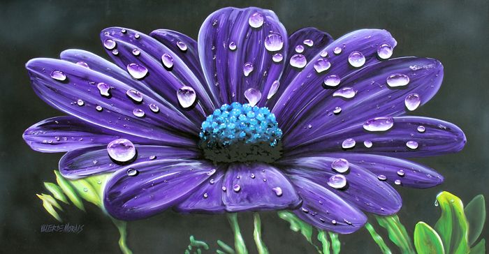 SIGNED ORIGINAL ACRYLIC ON CANVAS HAND SIGNED BY THE ARTIST VALTER MORAIS- "DEW DROPS". MUSEUM WRAPPED