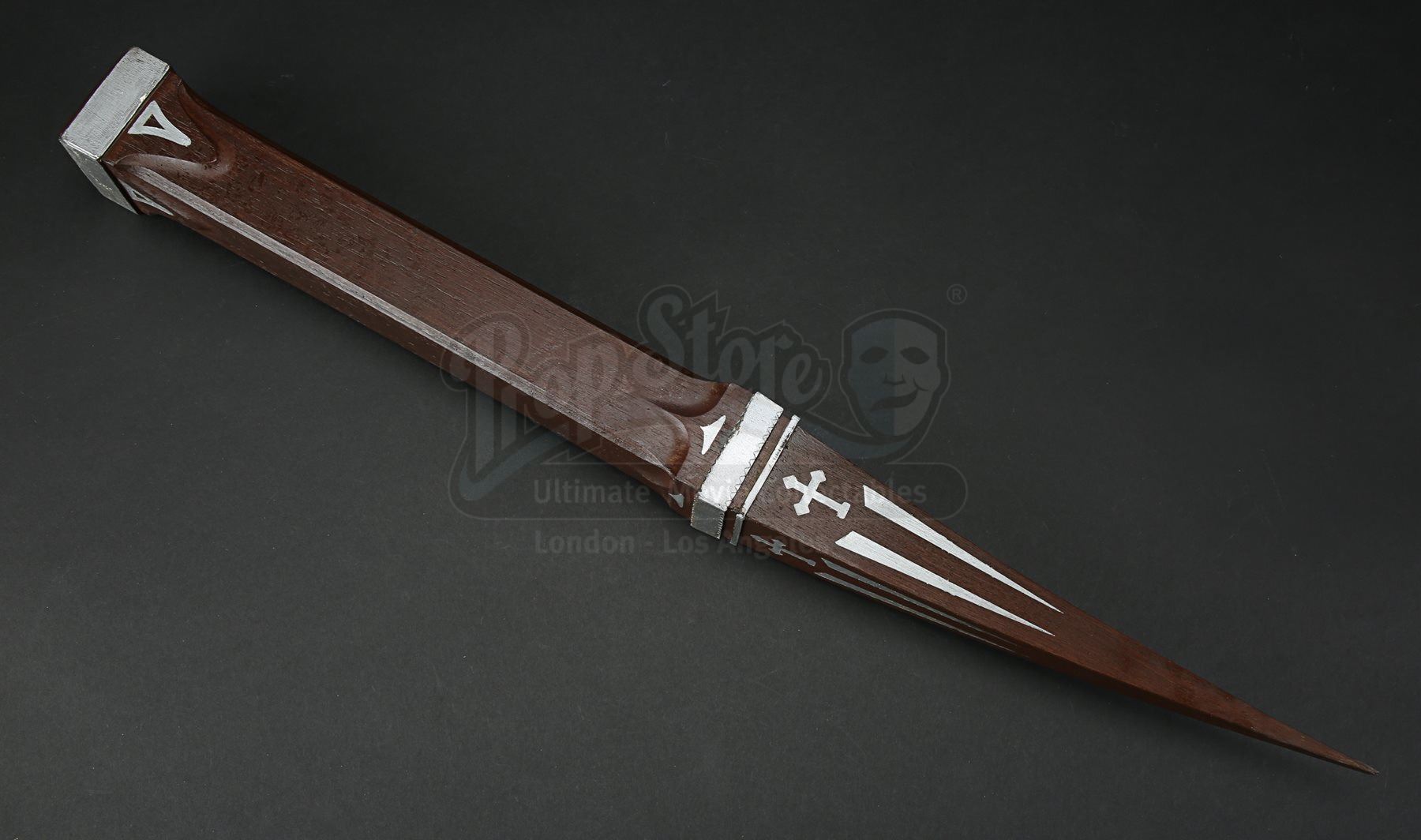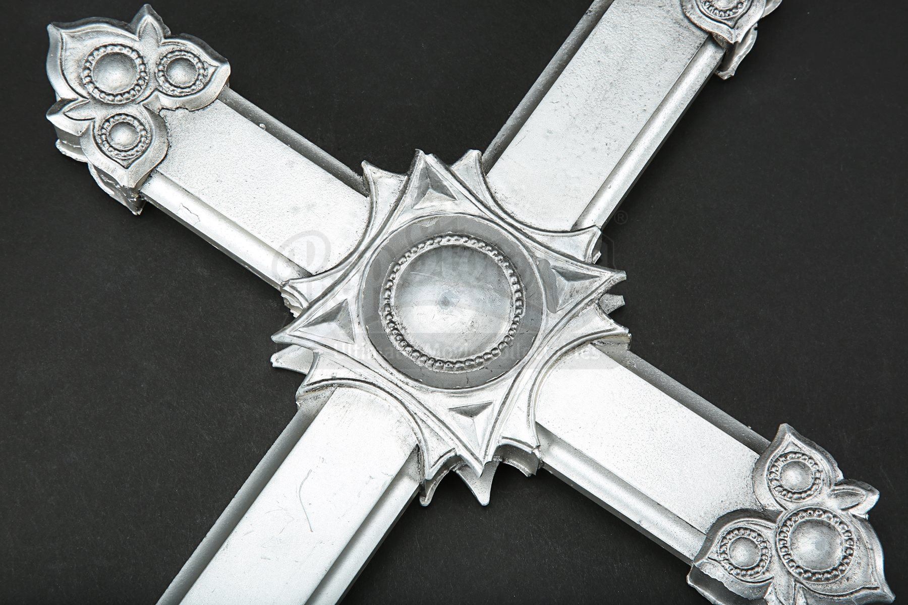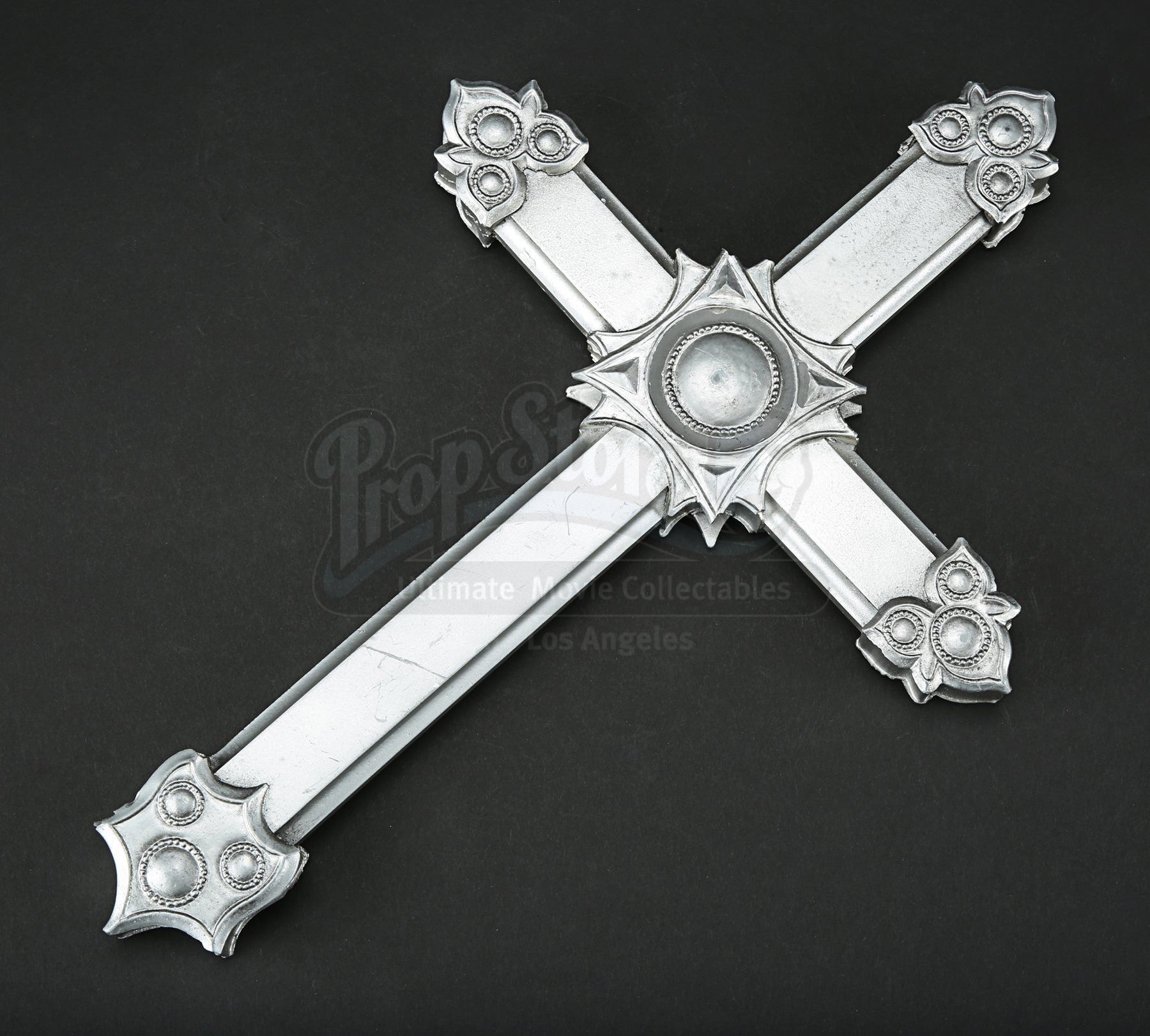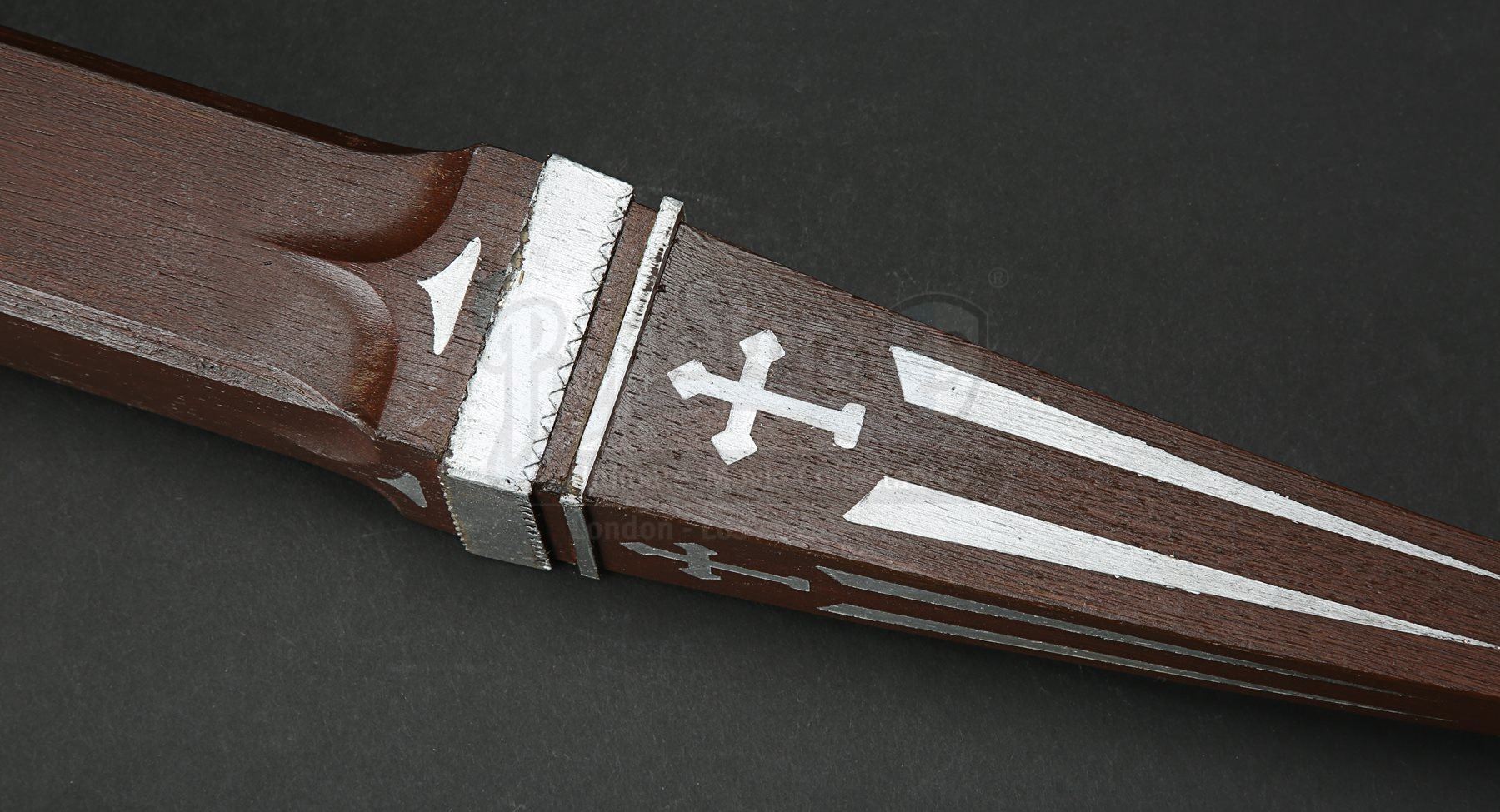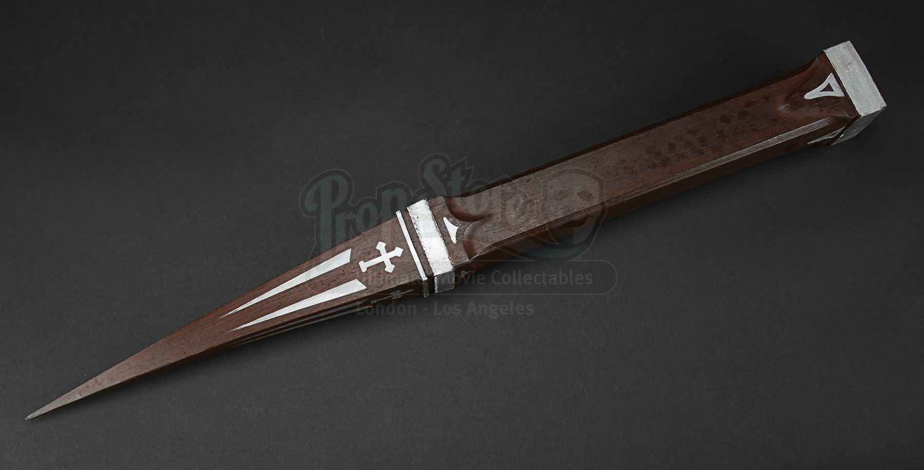 A collection of crucifixes and a stake from Stephen Sommers’ fantasy-adventure film Van Helsing. The Vatican Secret Order armoury was well stocked with vampire-hunting devices while Van Helsing (Hugh Jackman) briefed Friar Carl (David Wenham) on their mission there, before taking a variety with them to Transylvania.