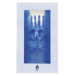 La couv. de la partition est titrée à la main et illustrée d'un visage de femme dans les bleu et gris et il a été collé sur le premier feuillet un dessin aux crayons bleus et jaune figurant une femme nue de profil, ainsi que 2 fleurons, dessinés par Victor Stuyvaert et daté 1918.