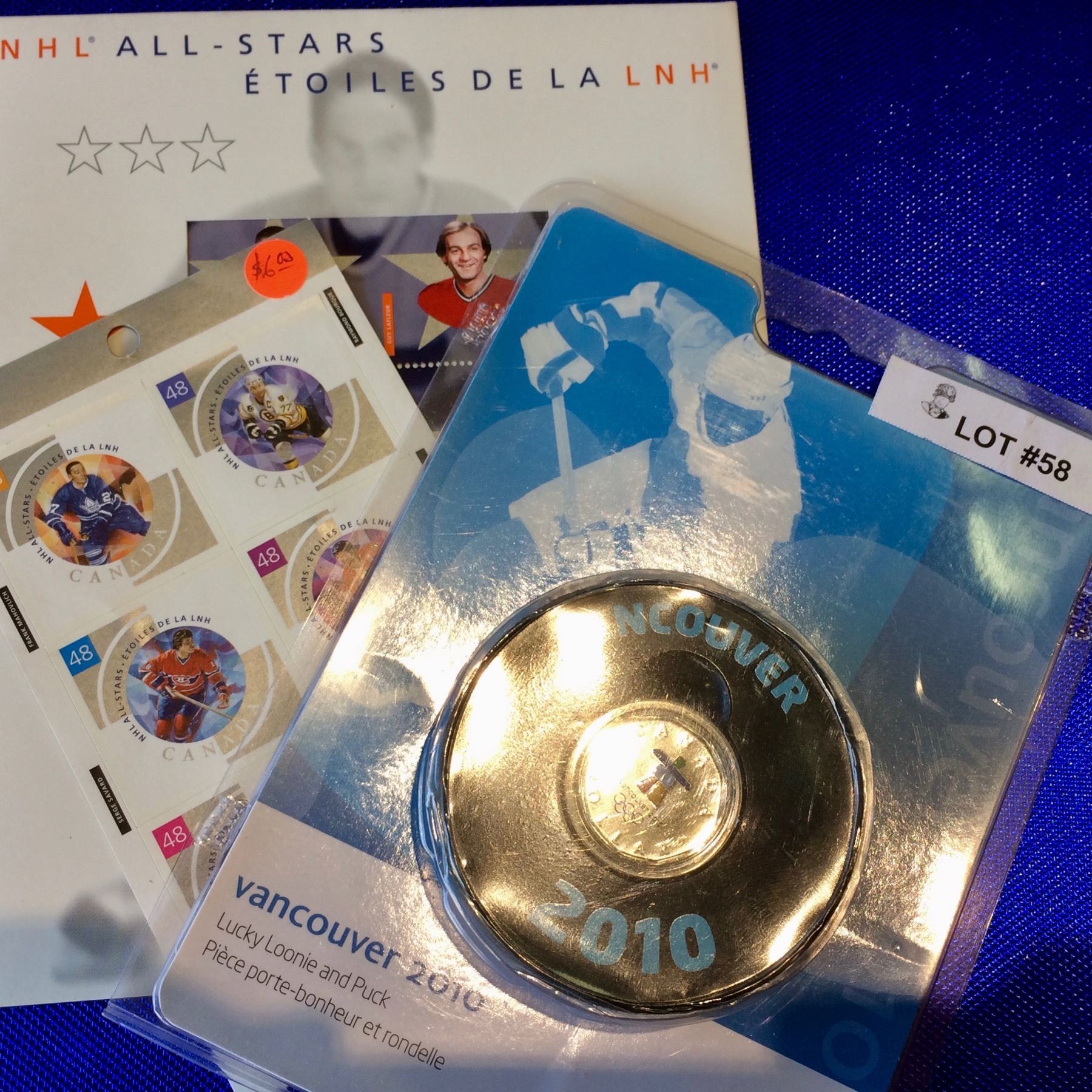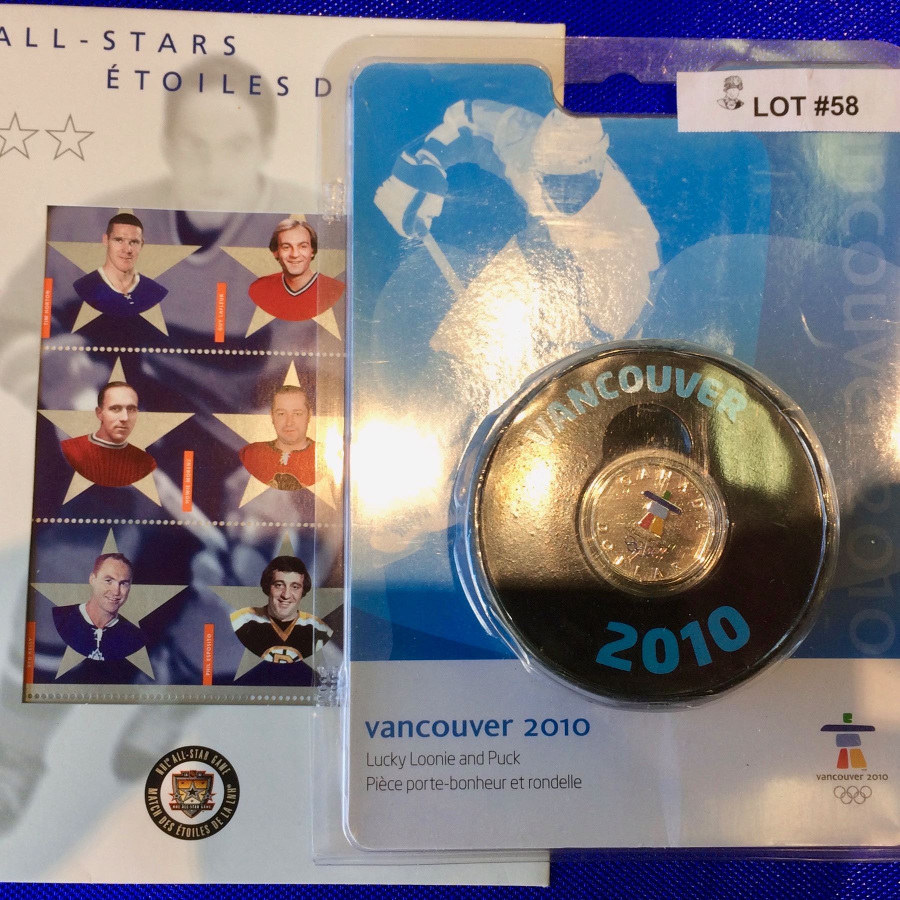 VANCOUVER 2010 LUCKY LOONIE AND PUCK WITH 2 NHL ALL STARS STAMP SET