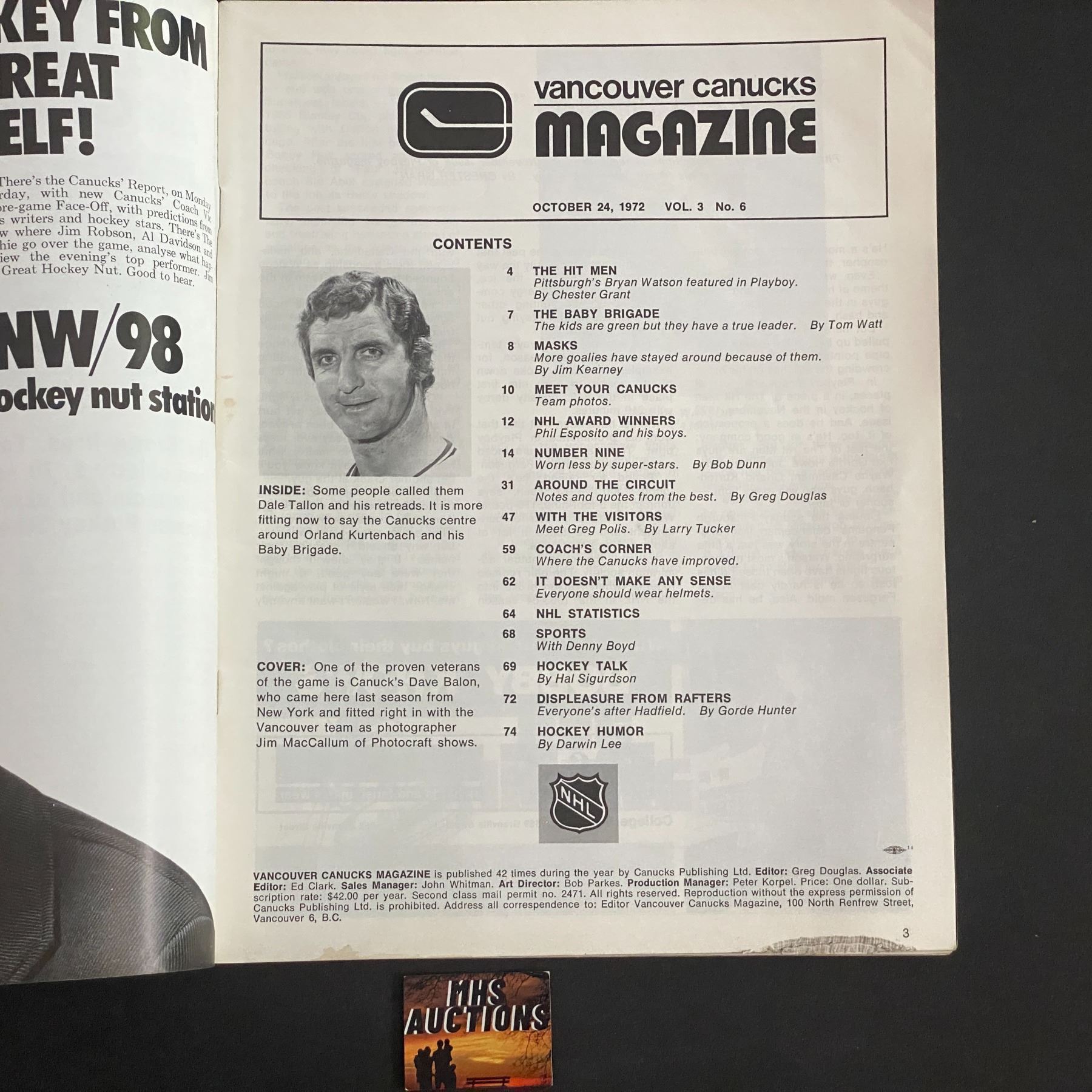 VANCOUVER CANUCKS PROGRAM FROM OCTOBER 24, 1972