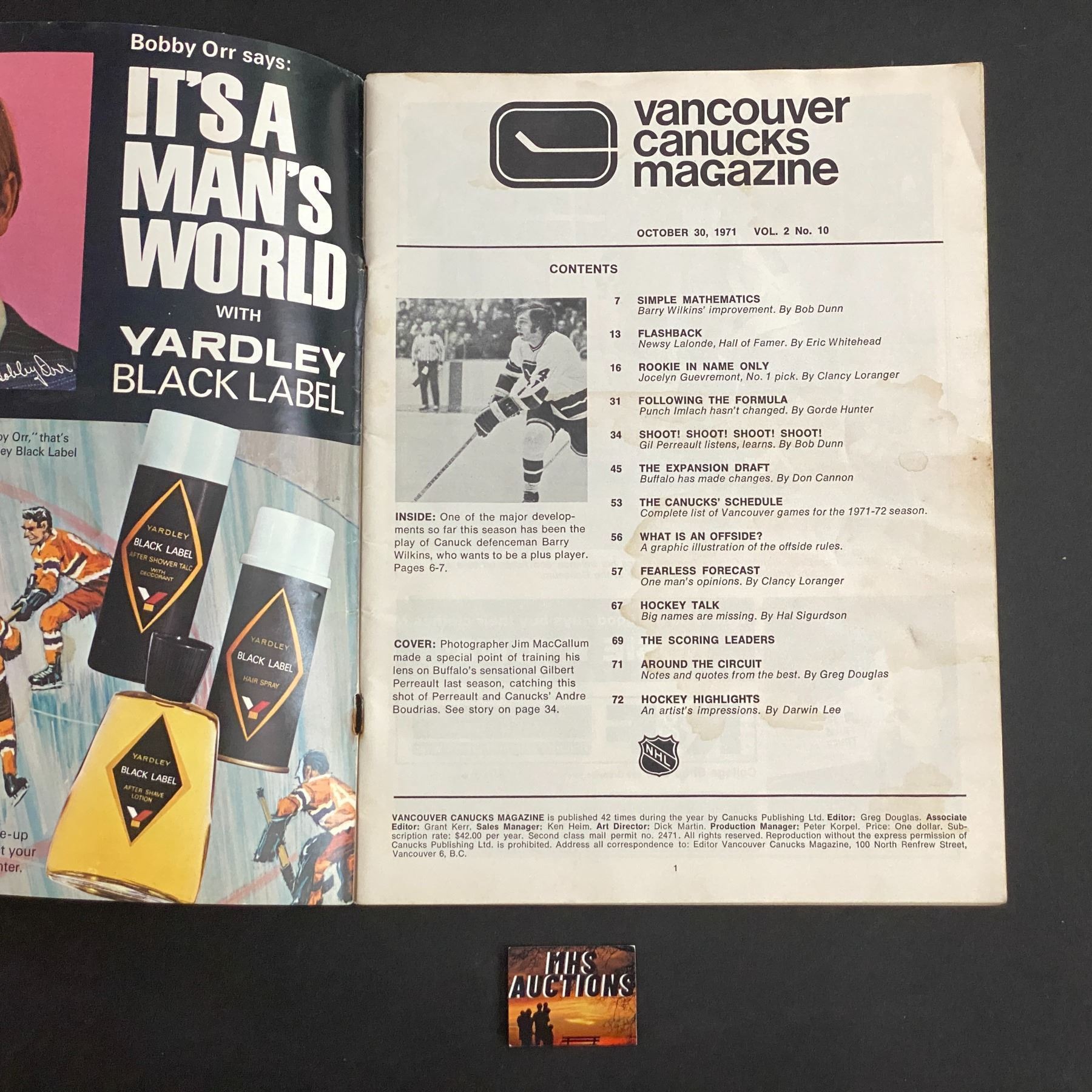VANCOUVER CANUCKS PROGRAM FROM OCTOBER 30, 1971