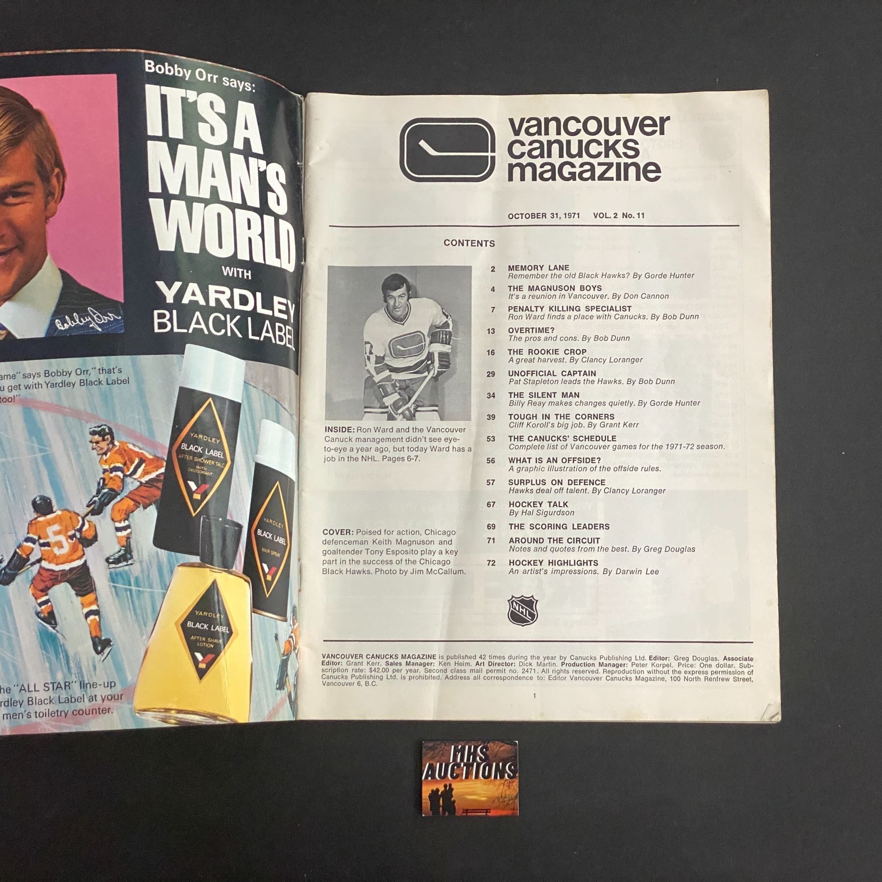 VANCOUVER CANUCKS PROGRAM FROM OCTOBER 31, 1971