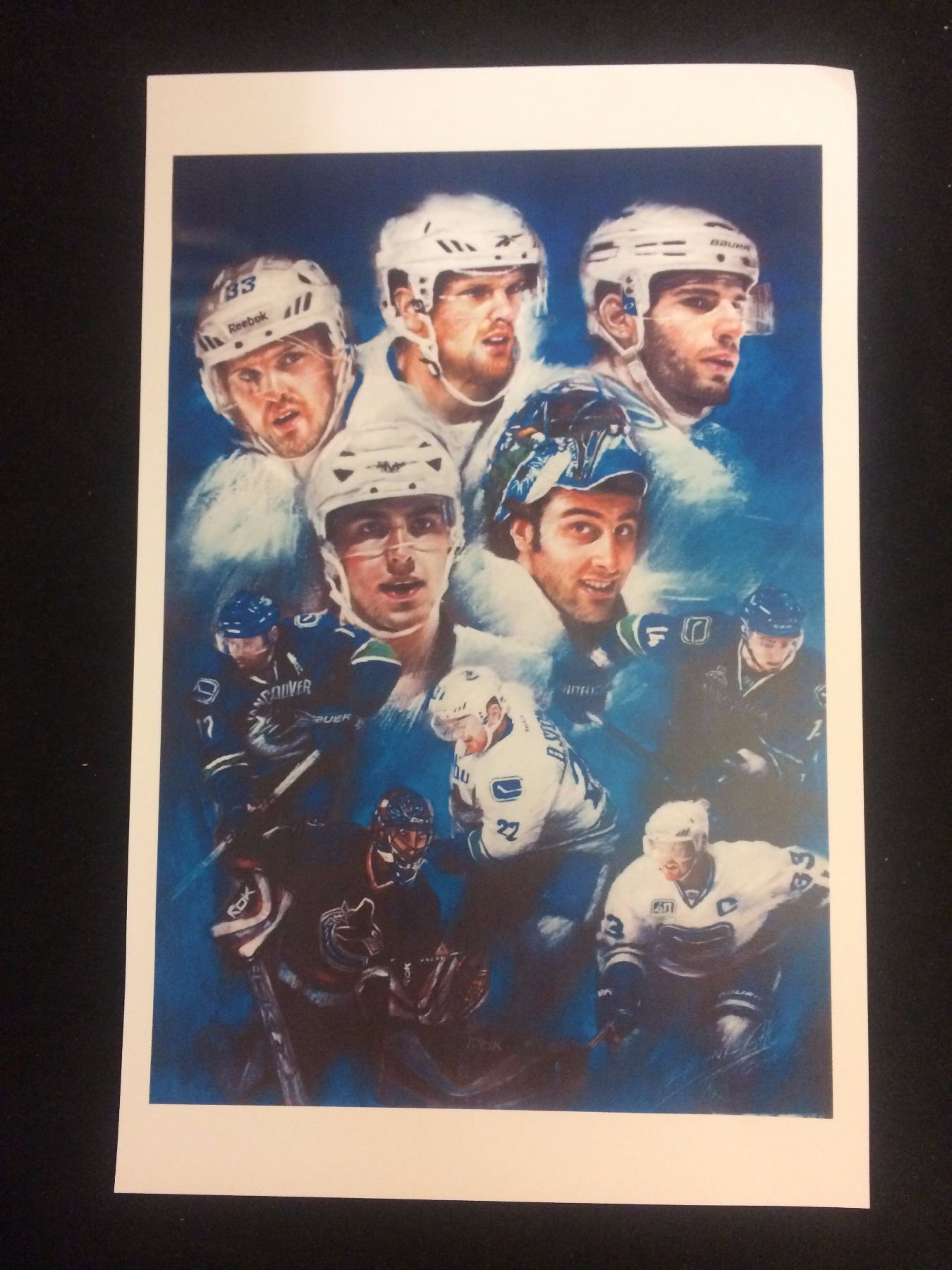 VANCOUVER CANUUCKS PLAYERS ARTWORK 11" X 18"