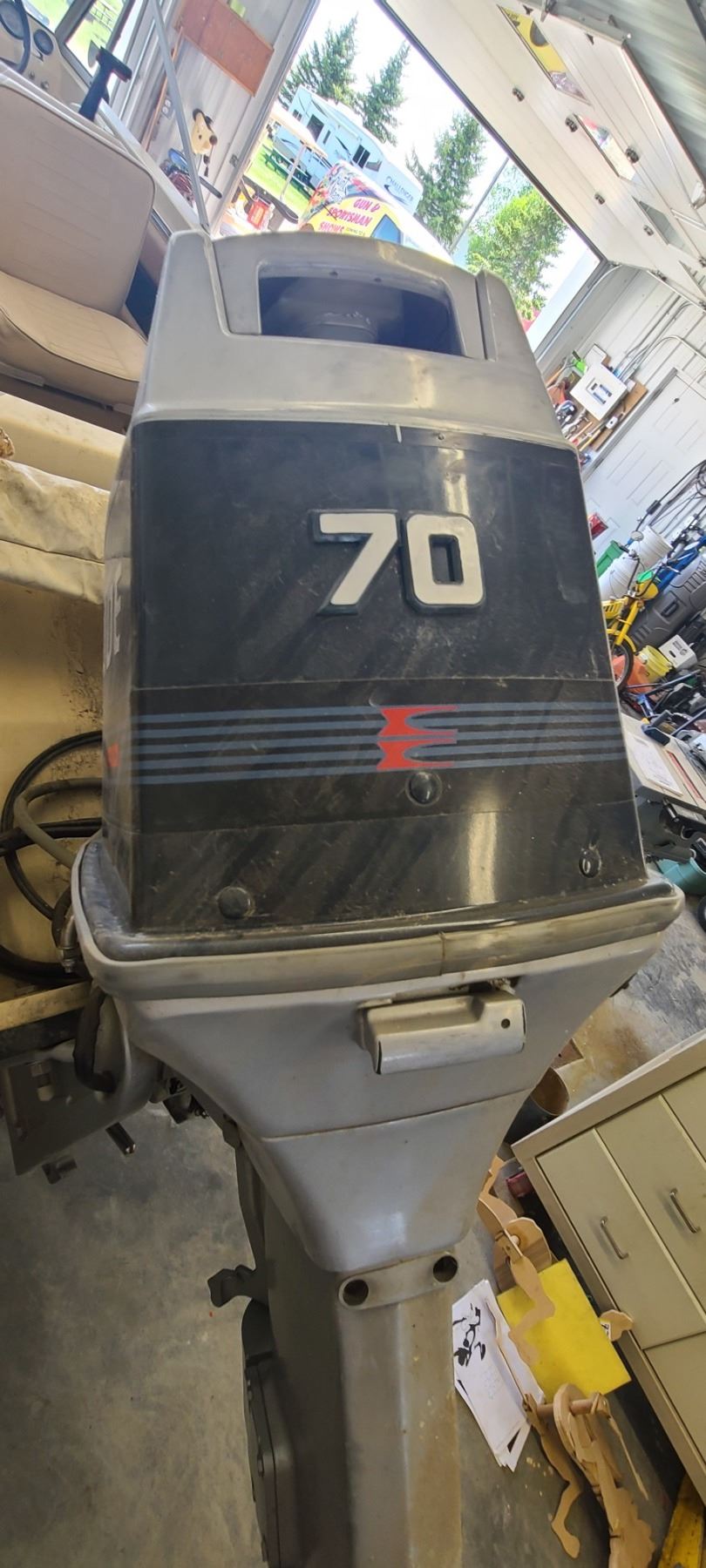VANGUARD FIBERGLASS HAUL WITH EVINRUDE VRU 70 OUTBOARD MOTOR - COMES WITH TRAILER, THREE BOAT BUMPERS, TWO OARS, SKIES.BOAT VIN NUMBER: ZKC16839M841