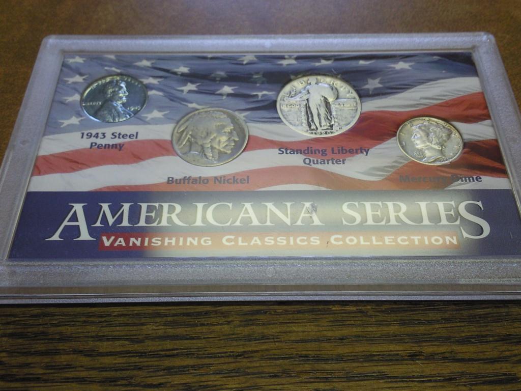 1943 STEEL CENT, BUFFALO NICKEL, MERCURY DIME AND STANDING LIBERTY QUARTER
