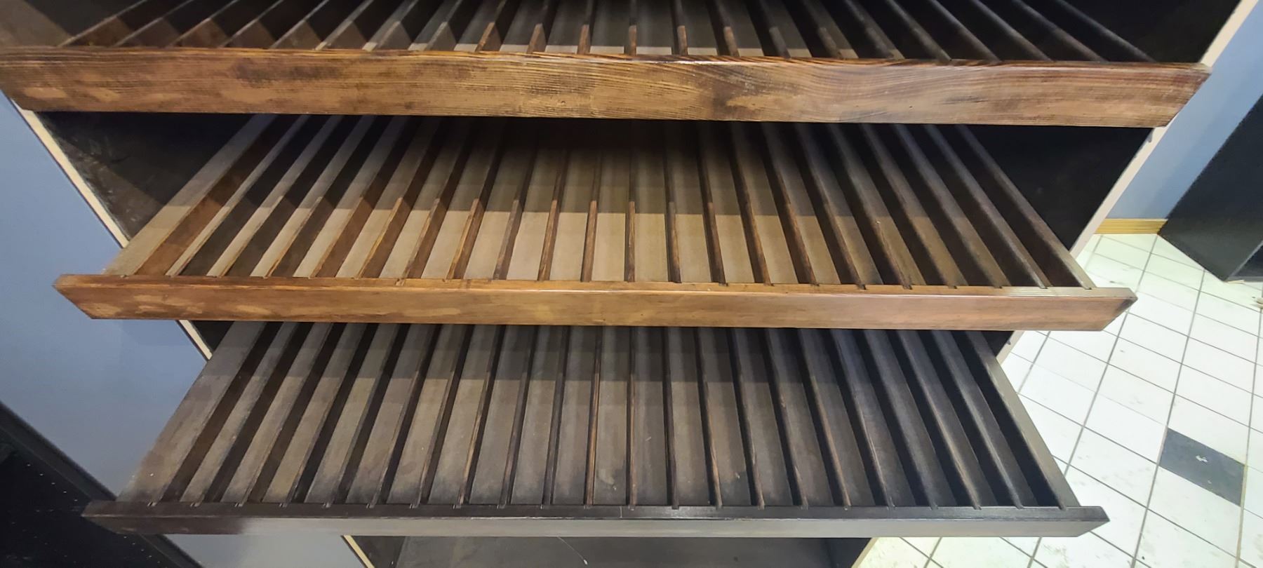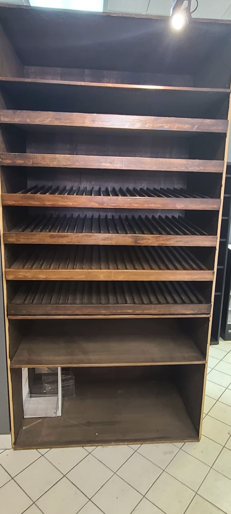 VAPE JUICE DISPLAY/STORAGE CABINETC/W 6 SLIDING SHELVES. SIZE 4'W X 8'H X 2'D. LOCATED IN ST. ALBERT