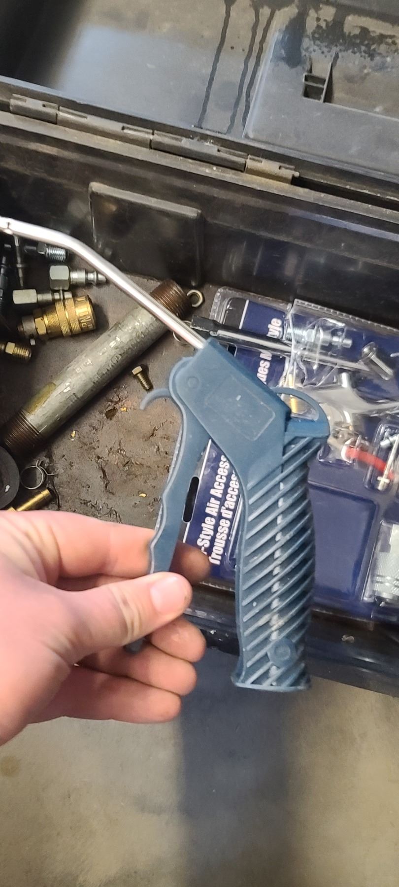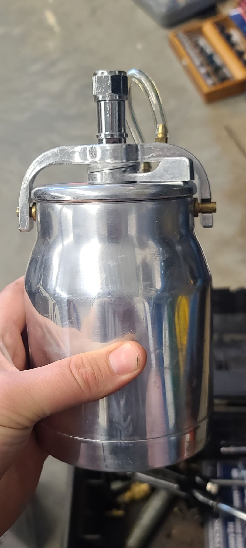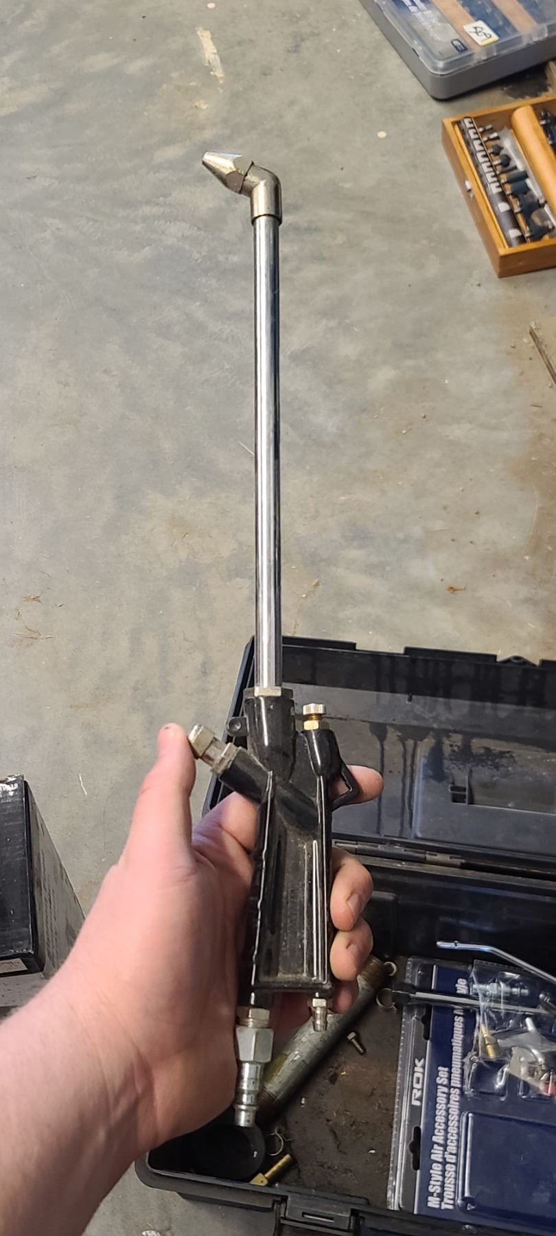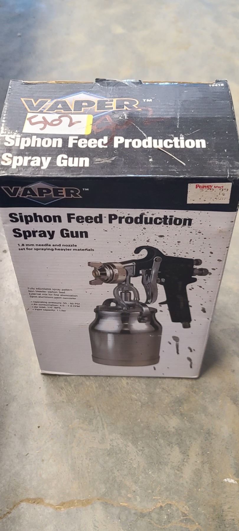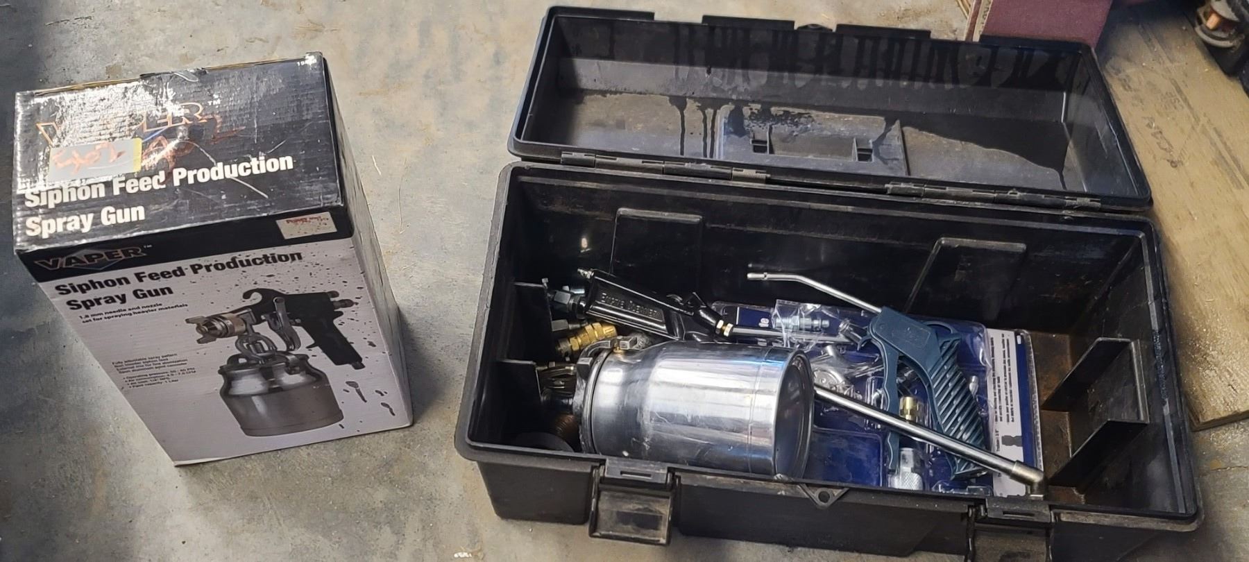 VAPOR SIPHON FEED SPRAY GUN w/ MAUNAUL IN TOOL BOX & ASSORTED AIR TIPS & NOZZLES VARIOUS LENGTHS & SIZES