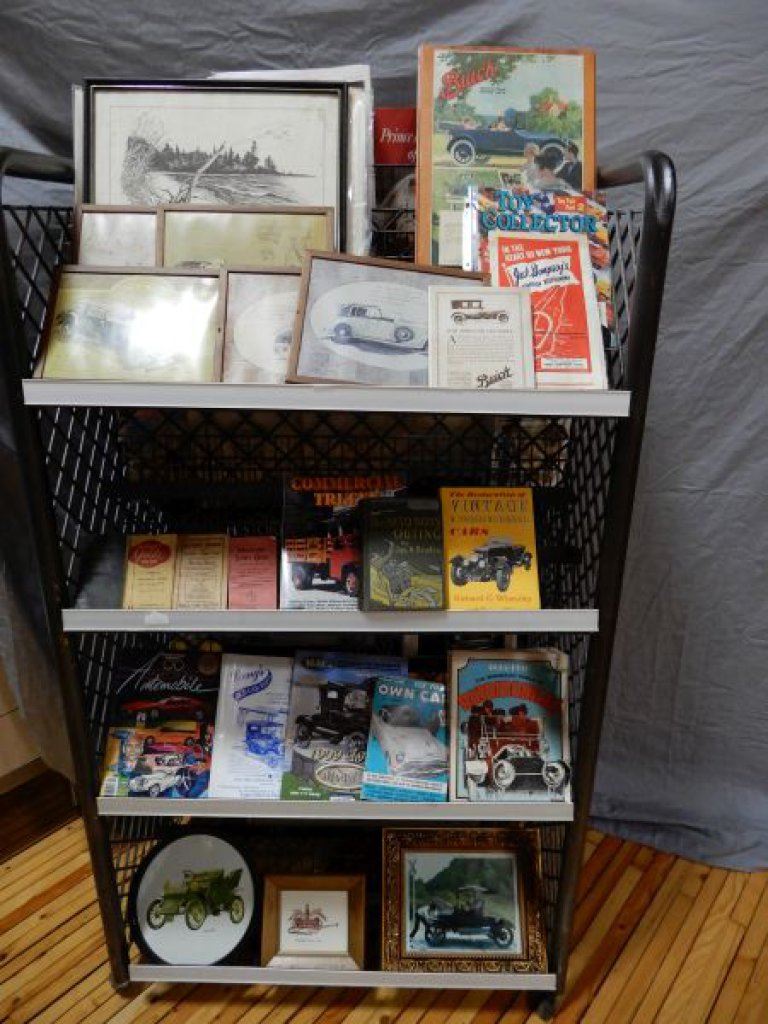 VARIETY OF VEHICLE RELATED COLLECTIBLES FRAMED PICTURES - HAMILTON STREET GUIDES - BUICK - TRAY - ASSORTED BOOKS LOCATION: UPPER LEFT