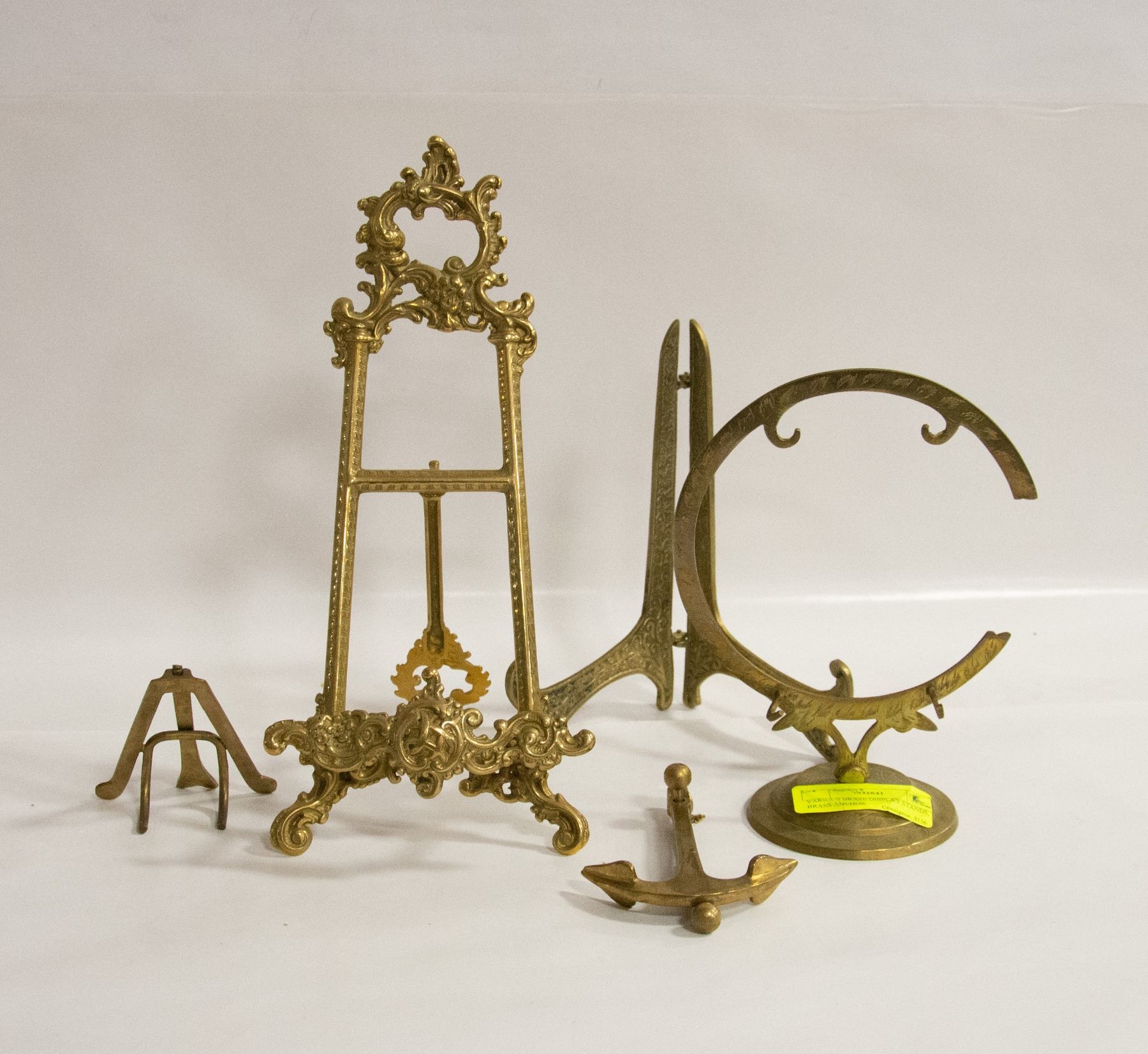 VARIOUS BRASS DISPLAY STANDS, BRASS ANCHOR