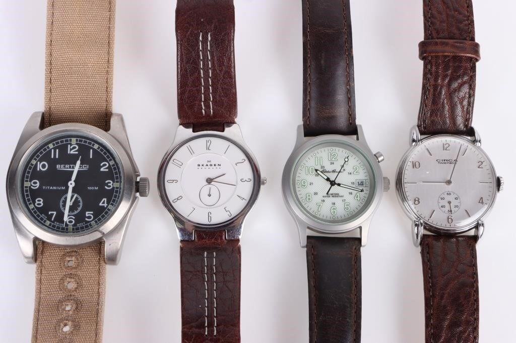 Various men's wristwatches lot of 4 to include: Bertucci, Eddie Bauer, Circa & Skagen. Wristwatch Mens