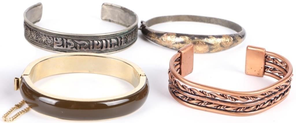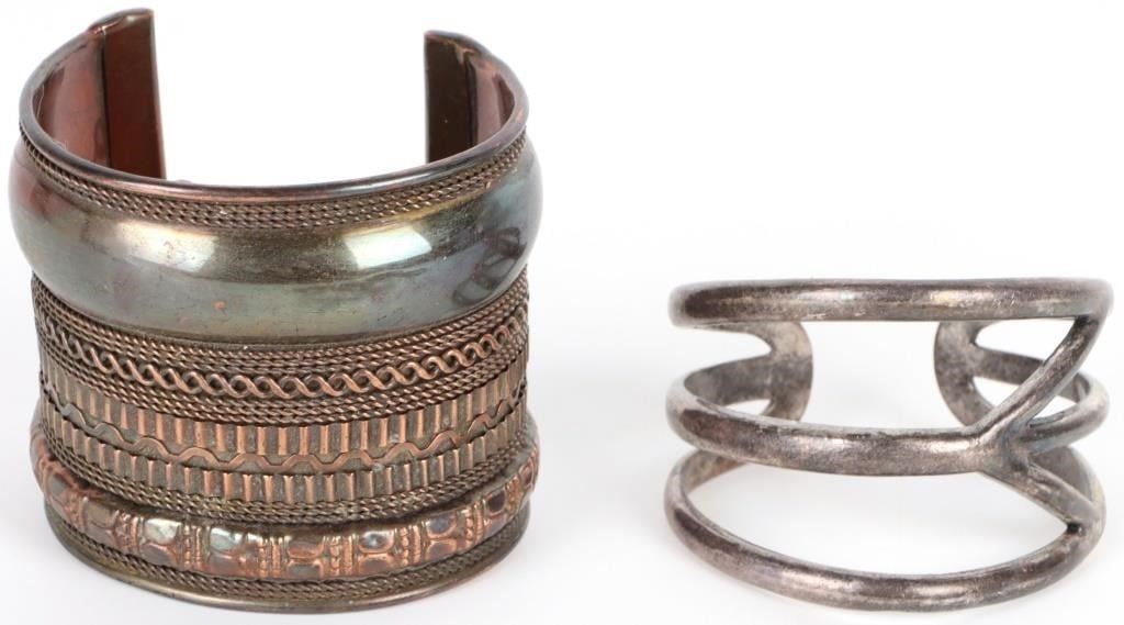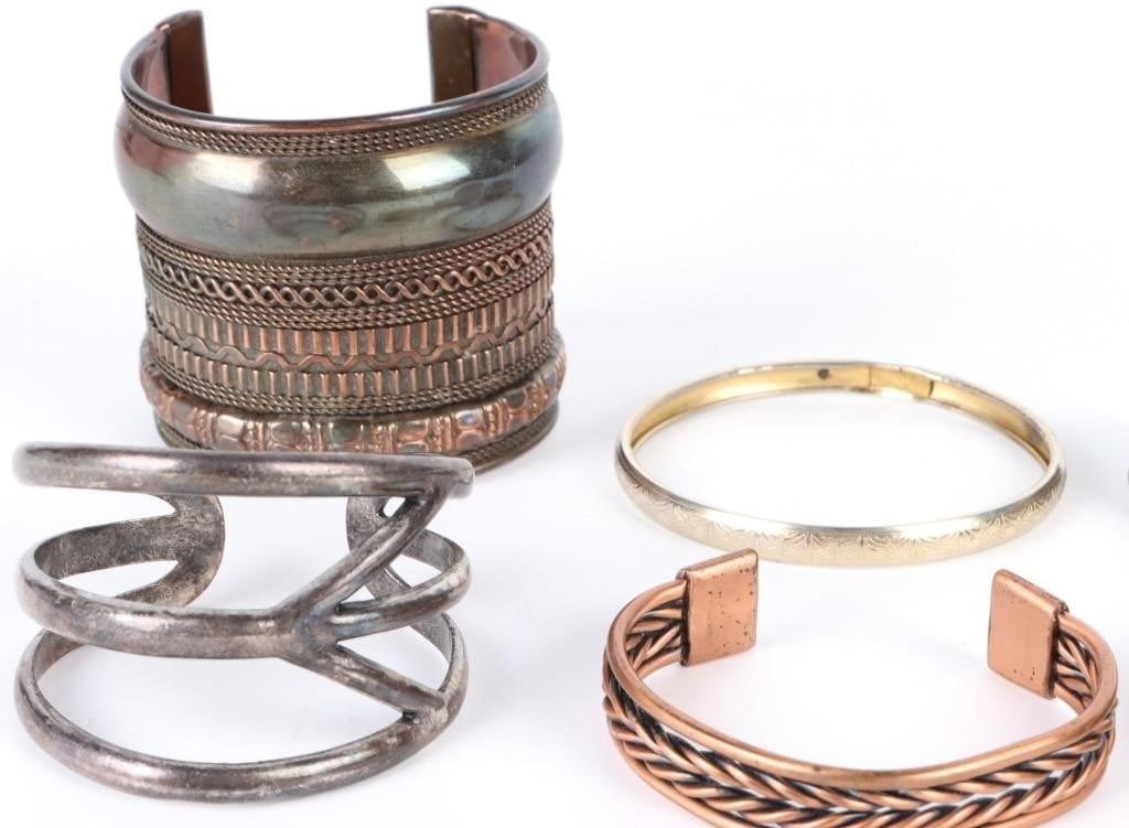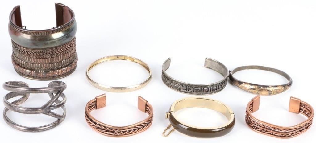 Various metal cuff bracelets lot of 8 to include: copper, Tibetan silver, silver from Thailand