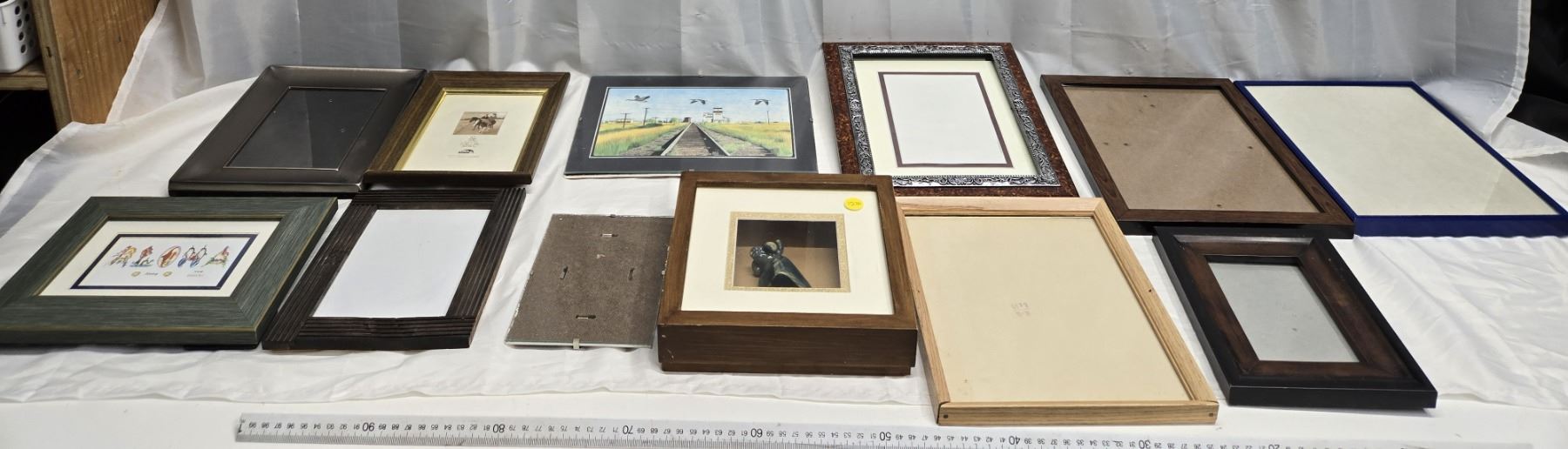 VARIOUS PICTURE FRAMES. 6-5X7/1-4X6/1-8X10/3-11X13/1-SHADOW, 1-3X5.