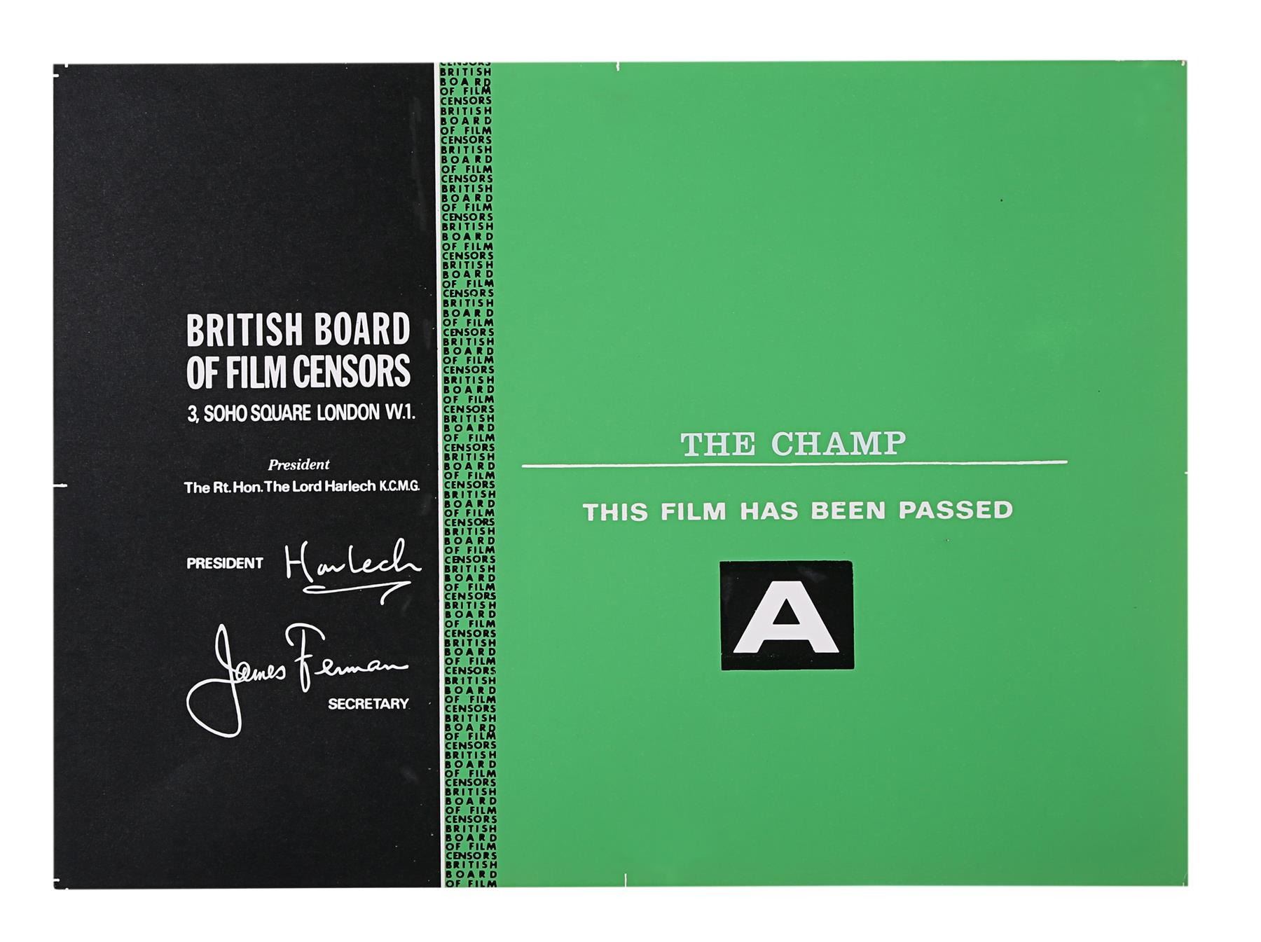 A selection of nine A-Certificate BBFC (British Board Film Classification) Certificates for the "The Sting" (1973), "Babe" (1995), "The Day of the Jackal" (1973), "The Champ" (1979), "Coal Miner's Daughter" (1980), "Duellists" (1977), two for "Jaws II" (1978) and the 1970's release for classic Western "Gunfight at the O.K. Corral". Each certificate is unique with only one (generally) being handmade to present before the camera prior to a film being screened.