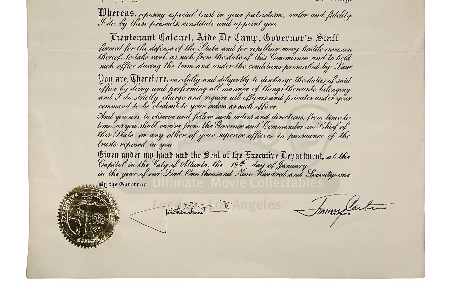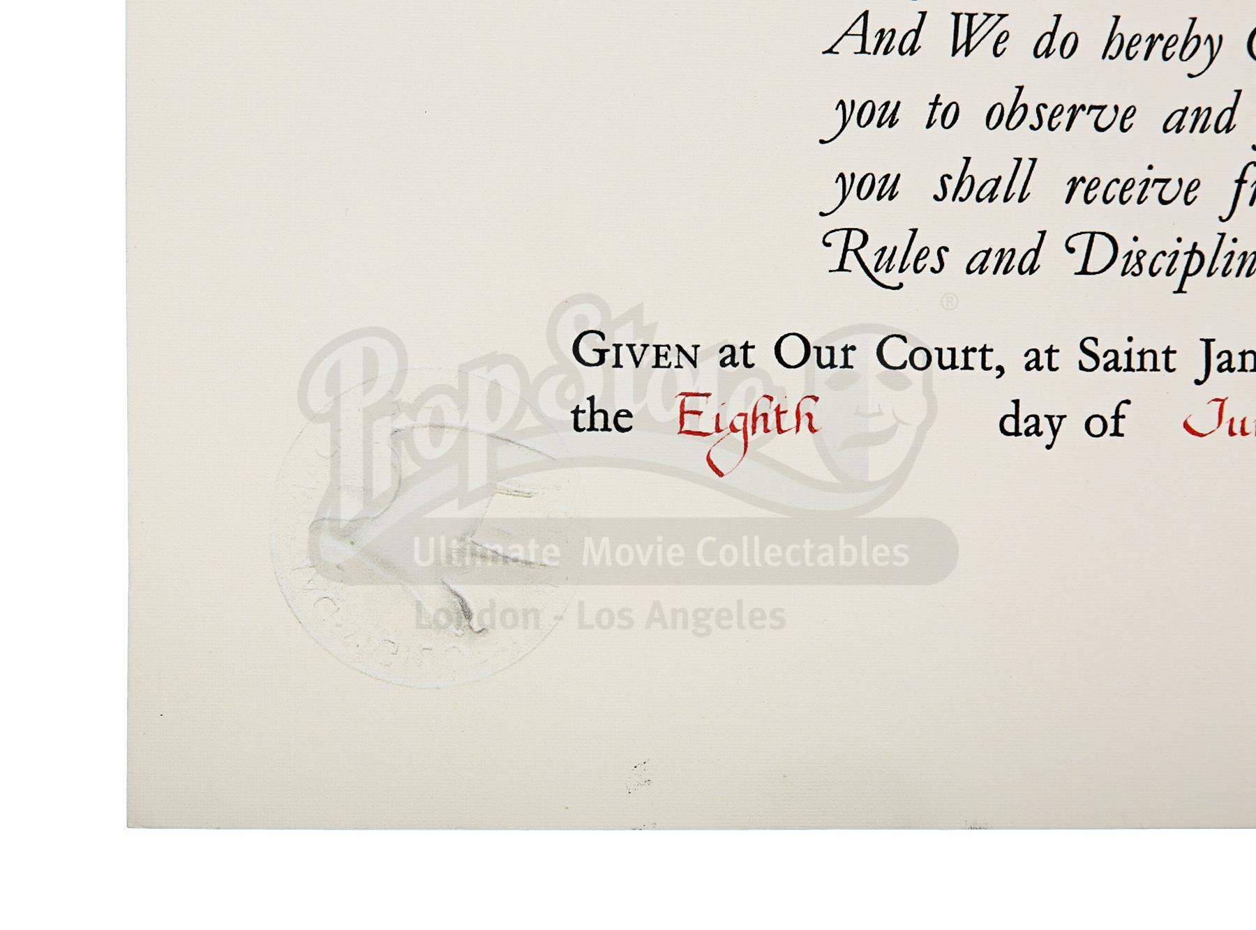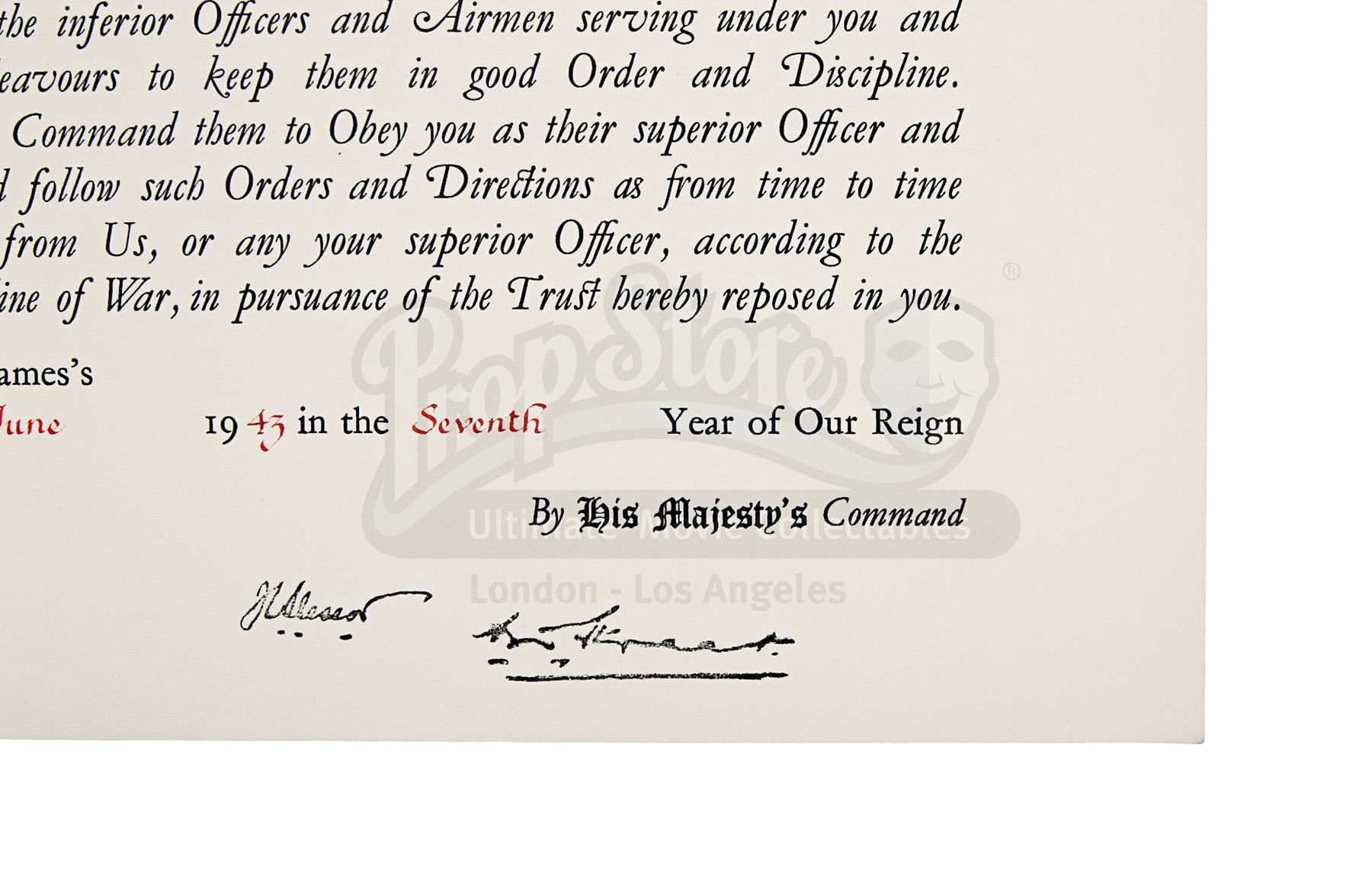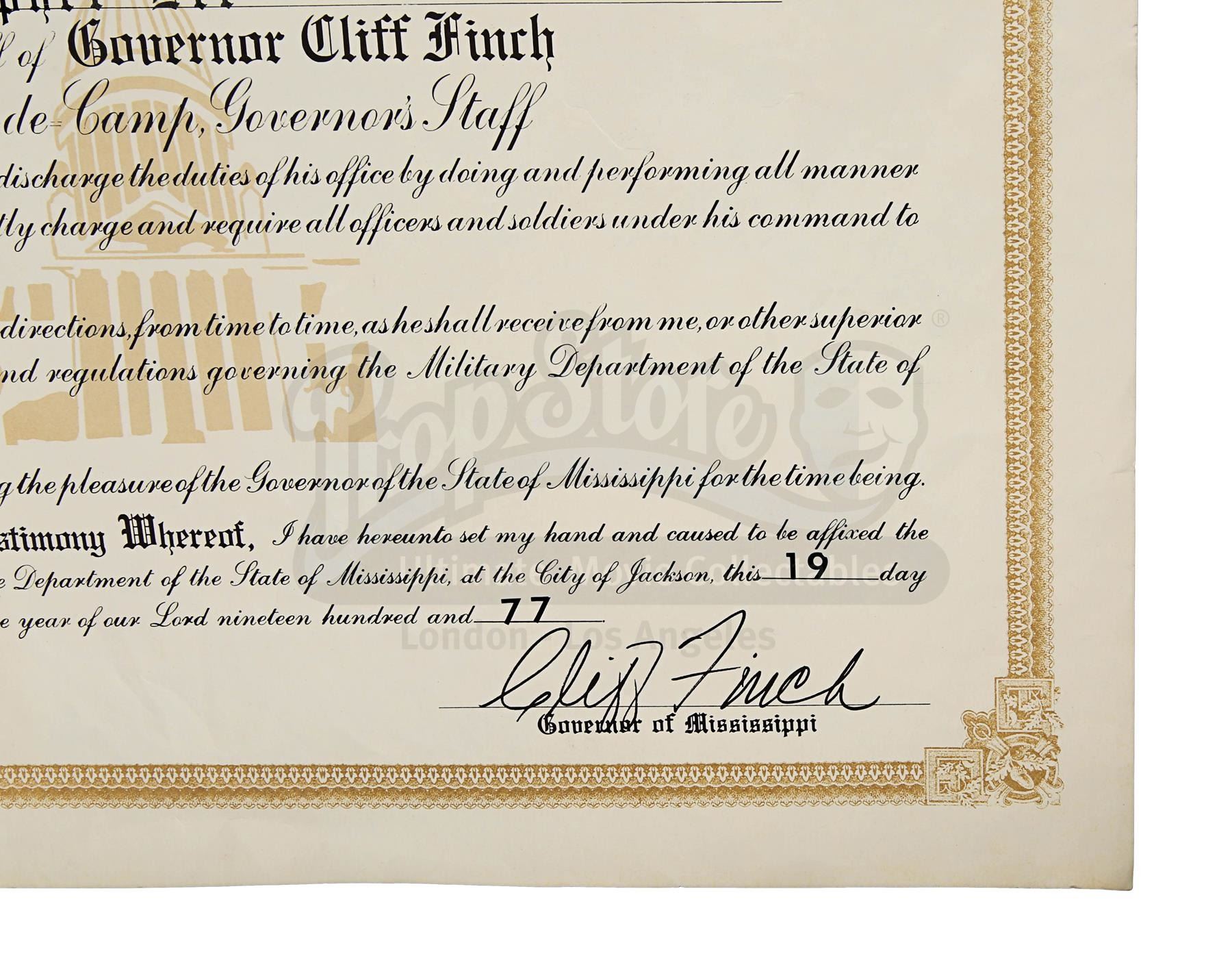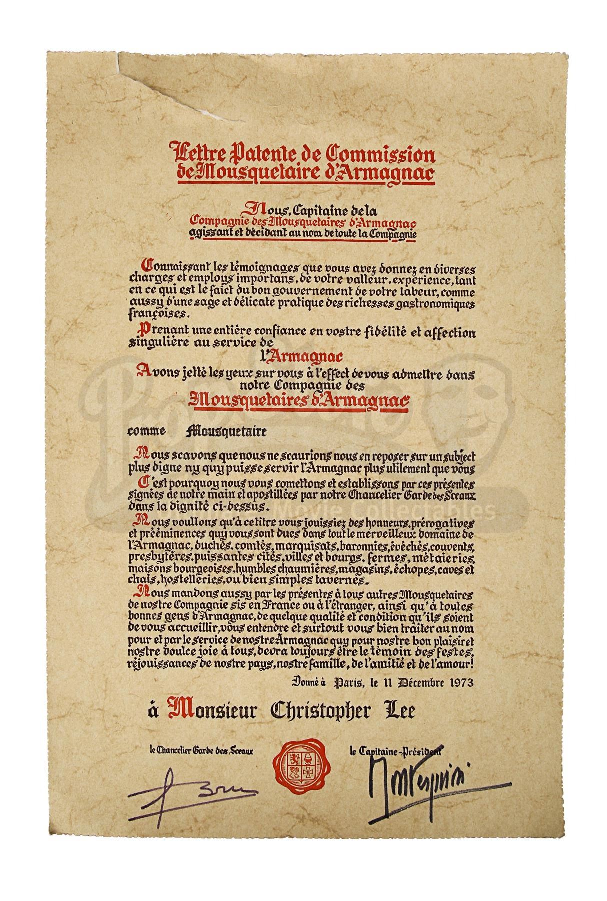 Seven certificates from Sir Christopher Lee's private collection, dated from 1943 to his death in 2015. These items come from the personal collection of legendary actor Sir Christopher Lee. The papers consist of: the registration of a tree planted in his memory by the Jewish National Fund; three appointments from King George VI (one as an RAF Officer, two as a Pilot Officer); his certificate of membership to the Company of Musketeers of Armagnac; and his nominations as Aide de Camp by Governor Cliff Hinch of Mississippi and Governor Jimmy Carter of Georgia.