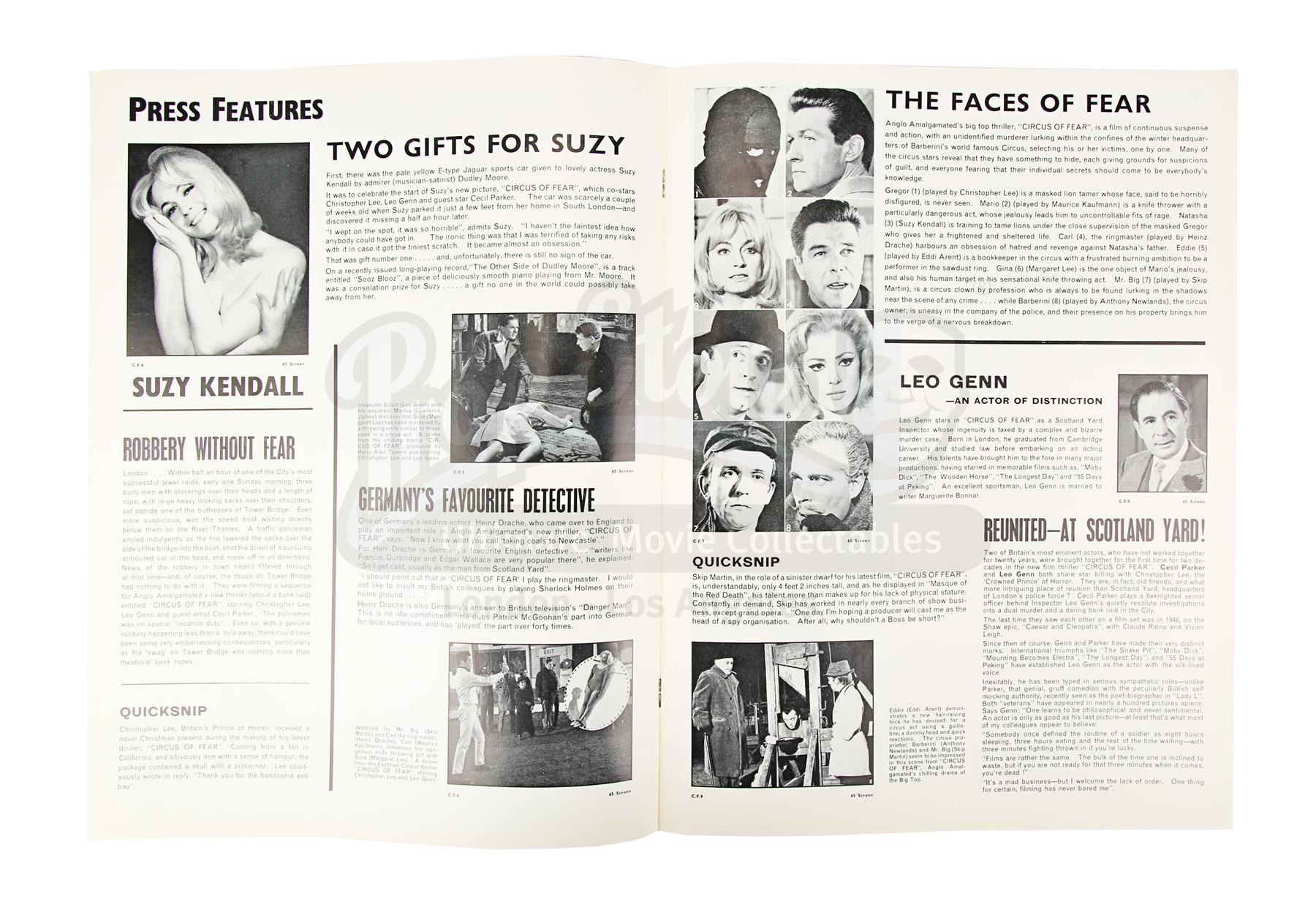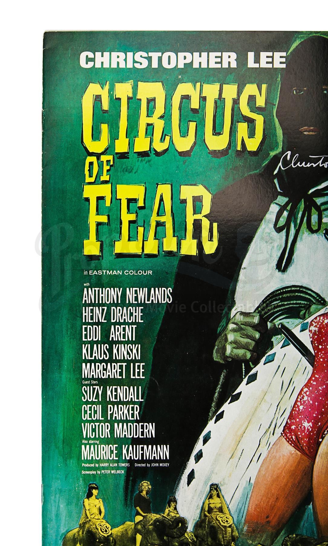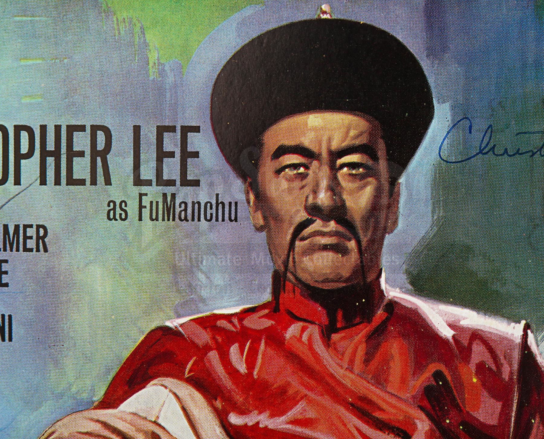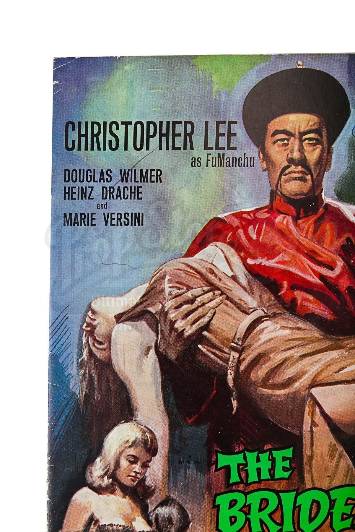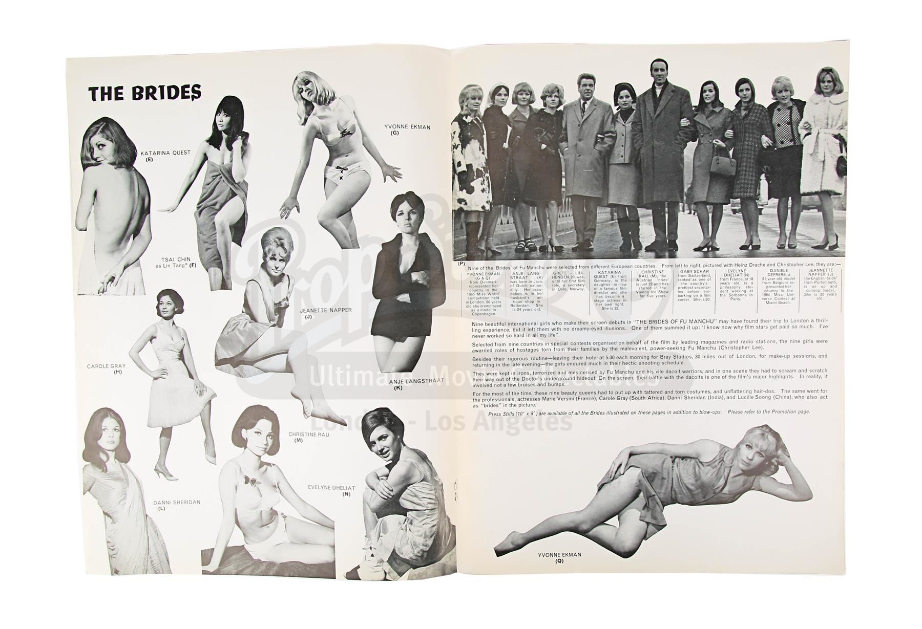 Four Christopher Lee-autographed press books and a photograph, from the promotion of his various productions. These items come from the personal collection of legendary actor Sir Christopher Lee.The lot consists of four autographed press kits, from The Face of Fu Manchu (1965), The Brides of Fu Manchu (1966), Circus of Fear (1966) and Arabian Adventure (1979), and a unique photograph taken of Lee at a book signing in Nottingham that was gifted to him by the photographer stated in a handwritten note. The press books and photograph show minor wear, edge wear and light creases. Dimensions (press kit): 38 cm x 28 cm x 1 cm (15" x 11" x 1/4"); (photo): 31 cm x 31 cm (12 1/4" x 12 1/4")