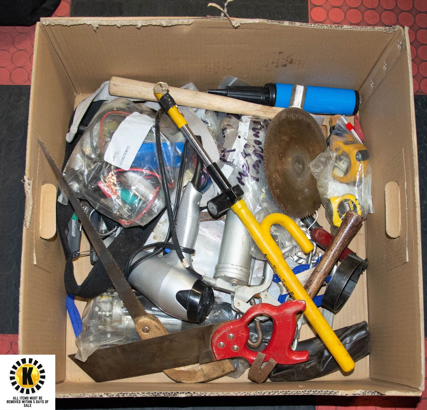 INCL. ASSORTED: TAPE MEASURES; HAMMERS; 2PC GREASE GUNS; STRING LINE; OIL FILTER WRENCH; + ETC. **ALL ITEMS MUST BE REMOVED BY 5PM SATURDAY, APRIL 22ND, 2023. ALL REMAINING ITEMS WILL BE SUBJECT TO A $6.00 PER DAY STORAGE CHARGE. ANY ITEMS REMAINING AFTER MONDAY, MAY 8TH, 2023 WILL BE CONSIDERED FORFEITED. NO REFUNDS WILL BE ISSUED FOR FORFEITED ITEMS.** TO SCHEDULE A PICK UP APPOINTMENT CLICK HERE