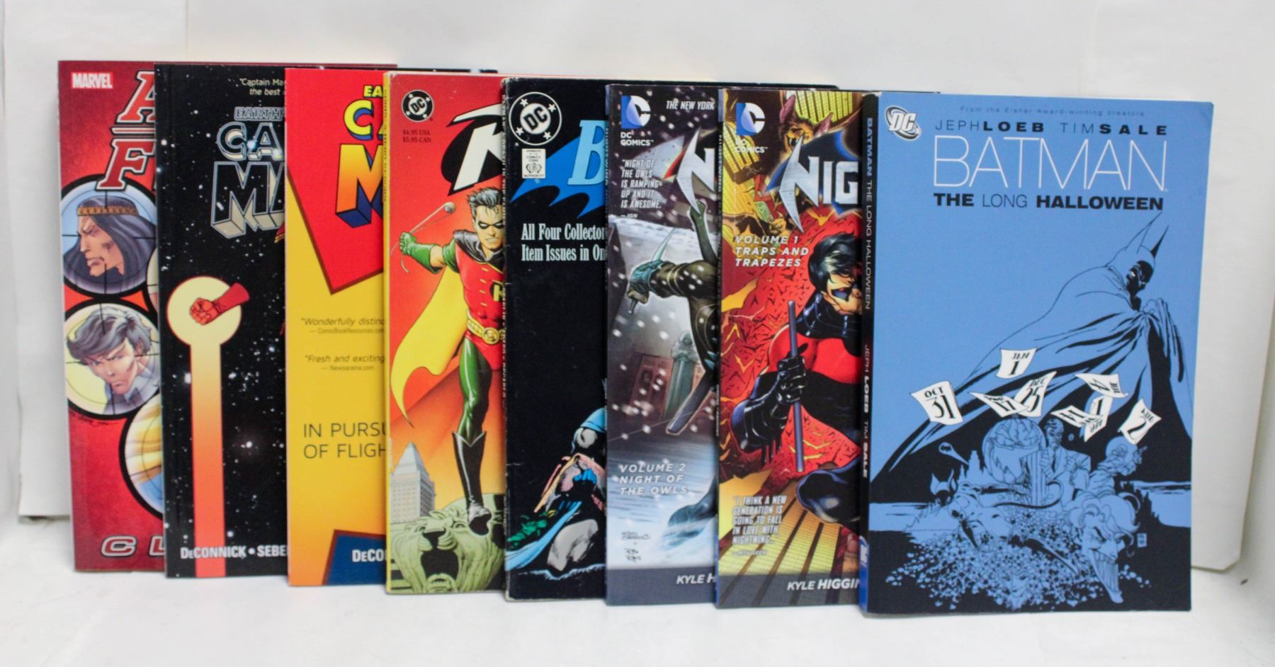 BATMAN: THE LONG HALLOWEEN; NIGHTWING: VOL #1 AND VOL #2; BATMAN: DEATH IN THE FAMILY; ROBIN: A HERO REBORN; CAPTAIN MARVEL: DOWN; CAPTAIN MARVEL: IN PURSUIT OF FLIGHT; ALPHA FLIGHT CLASSICS