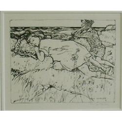VARLEY, Frederick Horsman, A.R.C.A., 1881-1969. "Sleeping by the Beach". Lithographie, signée au crayon. Lithograph, pencil signed. 5 1/4" x 6 3/4" - 13.3cm x 17.2cm. $550/750