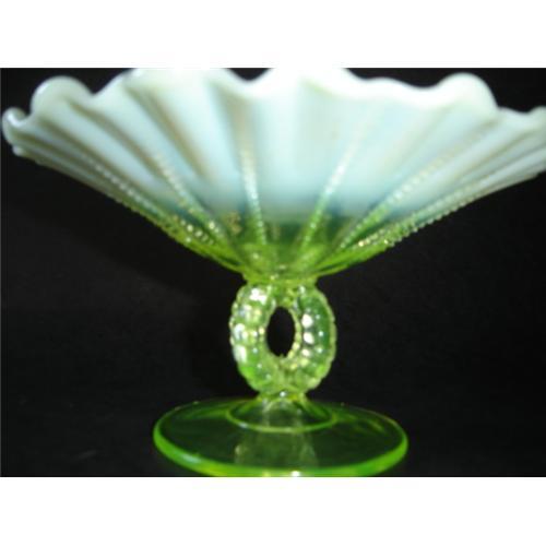 THIS A BEAUITFUL PIECE HATE TO PART WITH IT. 4 INCHES HIGH AND 6 ACROSS. IT HAS BEADED STEM BOTTOM AND BEADED RAYS DOWN THE CENTER.