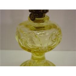 VASELINE GLASS MINIATURE LAMP. Excellent condition. 9.5” H