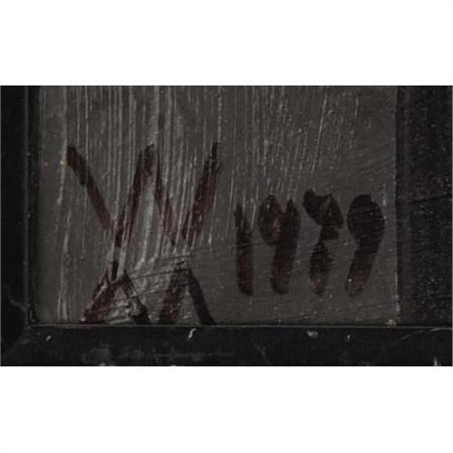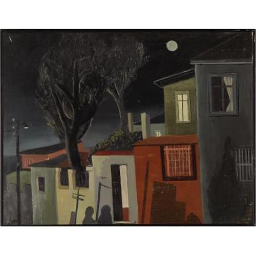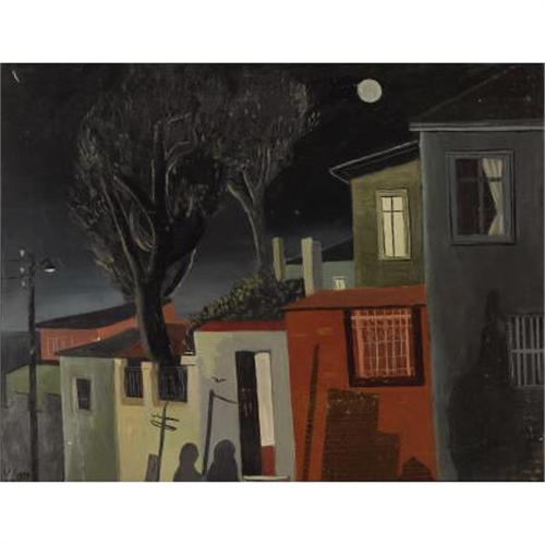 <B>Vassilka Moneva<BR></B></I><I>Night</B></I>, 1979<BR>Oil on canvas<BR>18-1/4 x 23-1/2 inches (7.19 x 9.25 cm)<BR>Signed and dated at lower left<BR><BR><BR><BR><b>Shipping:</b> Requires 3rd Party Shipping (<a target="_blank" href="http://www.heritageauctions.com/common/shipping.php">view shipping information</a>)