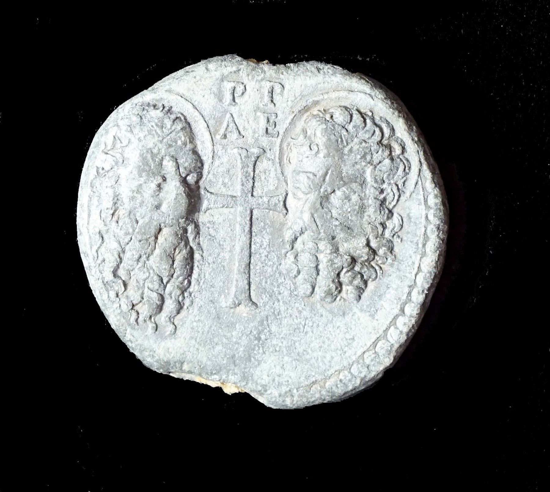 This seal has a completely different Obverse, moving away from dots outlining the faces of St-Paul and St-Peter, a more raised and detailed faces and a stylized cross. The raised faces have wear on the high points. The Reverse continues to be the same. A bit of cord showing. no oxidation.
