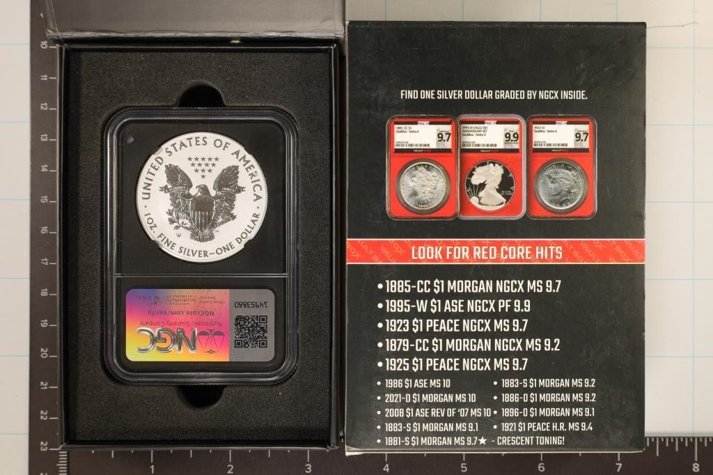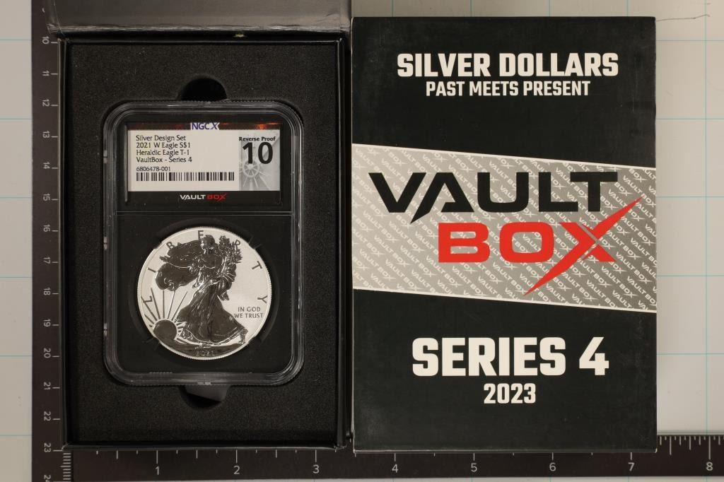 EAGLE FROM VAULT BOX SERIES #4 2023 (SILVER DOLLARS PAST MEETS PRESENT) REVERSE PROOF 10, IN ORIGINAL MINT PACKAGING GRADED BY NGCX