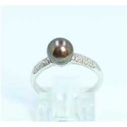 14K W/G PEARL AND DIAMOND RING /2.30 GRAMS/ROUND DIAMIOND 0.08CT/PEARL 7.00Mm