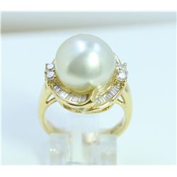 18K Y/G SOUTH SEA PEARL AND DIAMOND RING/8.3 grams/BAGUETTE DIAMOND 0.66CT/ROUND DIAMOND 0.24CT/ PEARL 13.1 mm