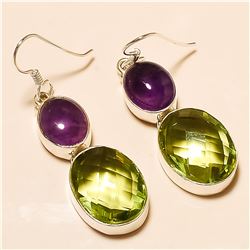 Green Amethyst/Amethyst Earring Solid Sterling Silver221 - Green Amethyst/Amethyst Earring Solid Sterling Silver